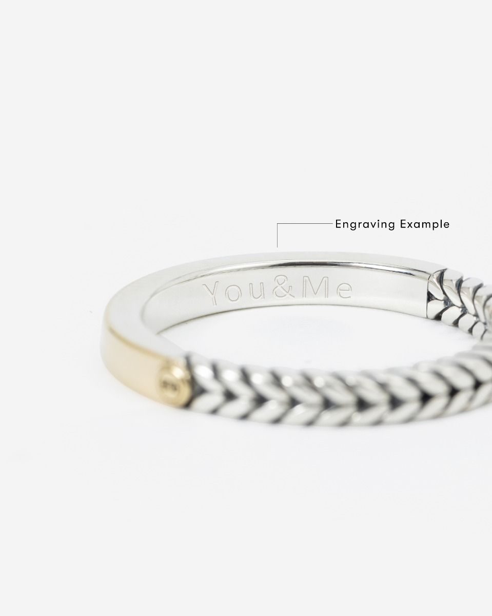 De Barbara Mini Dual Ring in Bicolor kenmerkt zich door een gladde zijde en een geweven, iconische Barbara textuur. Deze ring is dus perfect om je eigen verhaal mee te creëren doordat hij graveerbaar is. De Barbara Mini Dual Ring is smaller dan de Barbara Small Dual Ring. De diepte en elegantie van de Barbara weving maken deze ring een tijdloze keuze voor iedereen en hij is eindeloos te mixen met andere sieraden. Ontworpen in Amsterdam en op duurzame wijze geproduceerd in Zuidoost-Azië. Ben jij klaar om een nieuw hoofdstuk te beginnen met deze ring?