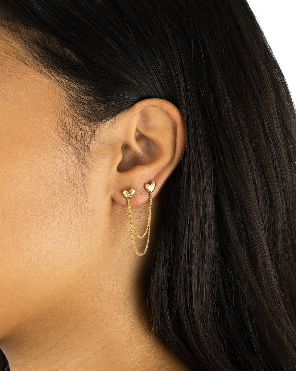Vier wederzijdse liefde met het Heart Double Chain Oorknopje in Goud Vermeil. Voeg een dosis romantiek toe aan je stijl met twee harten, verbonden als één. Twee harten gekoppeld aan elkaar, is dit sieraad anders dan alle andere Buddha to Buddha-sieraden, met behoud van enkele kenmerkende eigenschappen. Ontworpen in Amsterdam en handgemaakt in Zuid-Oost Azië van gerecycled zilver met een premium gold plating (3.0 micron dik). De plating is gemiddeld 5 maal dikker dan reguliere gold plated items. Welke gelegenheid maak jij nog bijzonderder door dit unieke oorknopje te dragen?