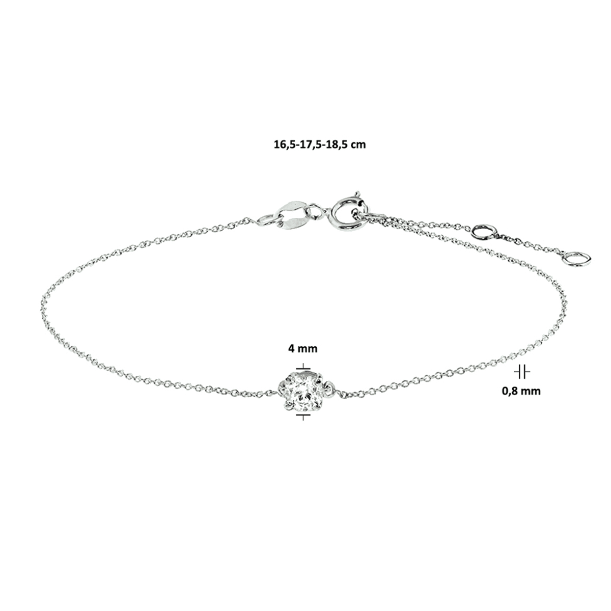 Beschrijving: Witgouden anker armband uitgevoerd met een schitterende zirkonia. Een goede garderobe begint bij de basis en ditzelfde geldt voor een tijdloze sieradencollectie! Deze basic armband met draaglengtes van 16.5 17.5 en 18.5cm past bij iedere outfit en is met veel andere sieraden te combineren.