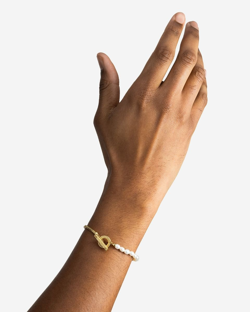 De Barbara Parel Mini Armband biedt een prachtige combinatie van witte ovale zoetwaterparels en onze iconische Barbara-schakel, prachtig afgewerkt met een gestructureerde togglesluiting. Ontworpen in Amsterdam en handgemaakt in Zuid-Oost Azië van gerecycled zilver met een premium gold plating (3.0 micron dik). De plating is gemiddeld 5 maal dikker dan reguliere gold plated items.
