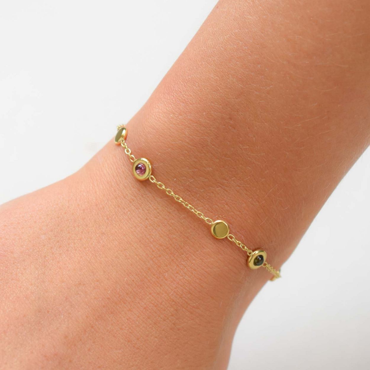 Deze unieke armband van Boccia Titanium wil je elke dag dragen! De armband bestaat uit prachtige tourmalijn stenen in de kleuren roze. blauw en groen. De toermalijn werkt aardend. beschermend en reinigend en het is een zeer geschikte edelsteen om te gebruiken als bescherming tegen allerlei vormen van negatieve energie. Combineer deze armband met het bijpassende collier voor een stijlvolle look. De armband heeft een lengte van 17cm met een verlengkettinkje van 4cm.