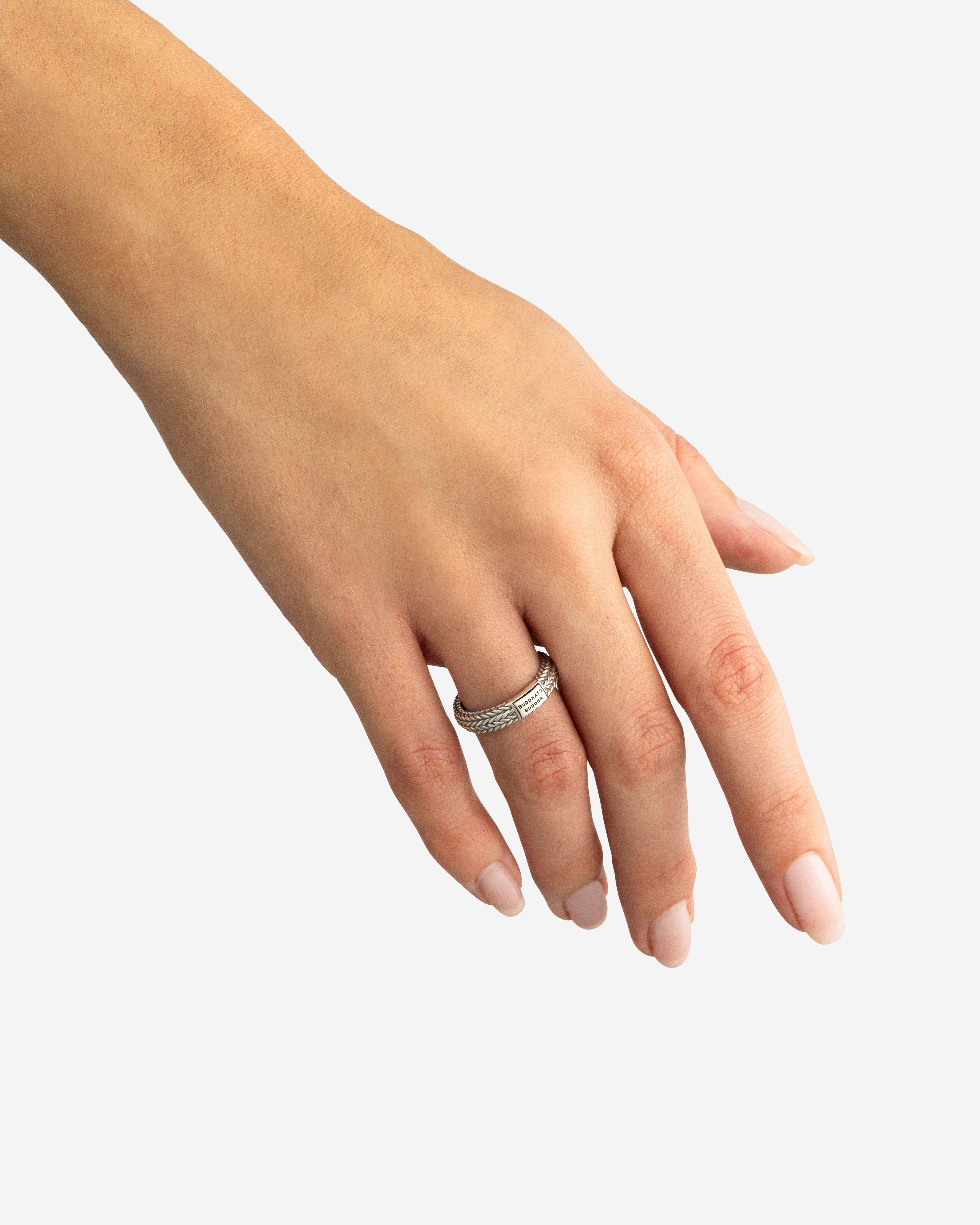 De Ellen collectie is een van de subtielere en verfijnde schakels in onze collectie. De Ellen Small ring is een prachtige ring die de iconische Ellen vlechttechniek laat zien. Met de hand gemaakt van premium gerecycled zilver. Het is een elegante ring die je goed kunt combineren met andere Buddha to Buddha sieraden. De Ellen Small ring is een kleinere en verfijndere versie van de populaire Ellen-ring. Wij vinden dat je alles in het leven moet vieren; vind jij dat ook?