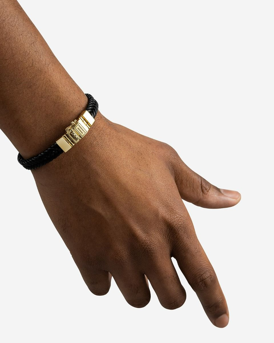 De armband Barbara Leer Zwart combineert puur vakmanschap met duurzame keuzes. Gemaakt van gerecycled zilver met een premium gold plating (3.0 micron dik). De plating is gemiddeld 5 maal dikker dan reguliere gold plated items. Voorzien van GRS-gecertificeerd gerecycled leer, biedt dit milieuvriendelijke sieraad een stijlvolle en duurzame uitstraling. De handgeweven armband is geïnspireerd op ons iconische Barbara-weefpatroon. Met het Global Recycled Standard (GRS)-certificaat garandeert deze armband dat het leer op verantwoorde wijze wordt verkregen en geproduceerd met aandacht voor milieu en sociale normen. Handgemaakt in Zuidoost-Azië, belichaamt het onze toewijding aan kwaliteit, vakmanschap en een groenere planeet. Deze bewuste en gedurfde armband is perfect voor elke gelegenheid.