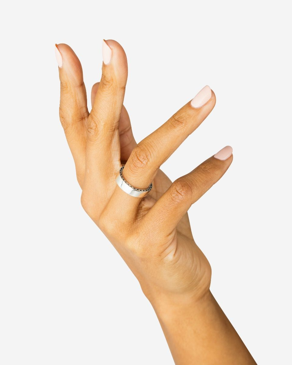 De George Small Gladde Ring in gerecycled zilver kenmerkt zich door een subtiele George structuur aan de zijkant. Deze ring biedt de mogelijkheid tot graveren, zodat je jouw eigen persoonlijke verhaal kunt vertellen met dit sieraad. Deze ring is groter dan de George Mini Smooth Ring, maar kleiner dan de George Smooth ring. Ideaal te combineren met andere George sieraden uit de collectie. Geschikt voor iedereen en passend bij elke stijl. Ontworpen in Amsterdam en op duurzame wijze geproduceerd in Zuidoost-Azië. Welke mijlpaal vier jij met dit unieke sieraad?