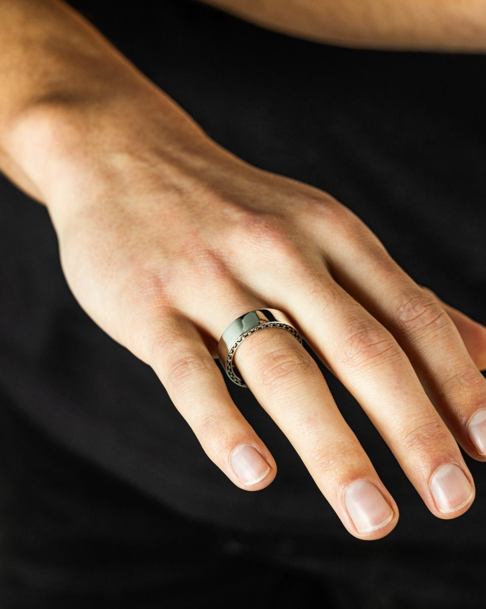 De George Gladde Ring in gerecycled zilver heeft een subtiele George structuur aan de zijkant. Met de mogelijkheid tot graveren, kun je jouw eigen persoonlijke verhaal vertellen met dit sieraad. Deze ring is groter dan de George Mini en Small Smooth. Ideaal te combineren met andere George sieraden uit de collectie. Geschikt voor iedereen en passend bij elke stijl. Ontworpen in Amsterdam en duurzaam geproduceerd in Zuidoost-Azië. Ben jij klaar om een nieuw hoofdstuk te beginnen met deze ring?