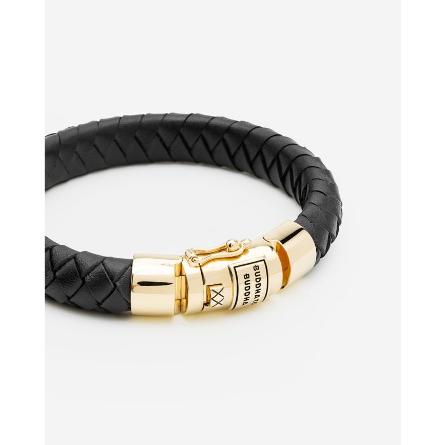 Met zijn klassieke design en ambachtelijke afwerking is de Vergulde Ben Leren Armband Zwart een ware eyecatcher. De combinatie van leer en gold plated zilver maakt deze armband tot een stijlvol statement. Ontworpen in Amsterdam en handgemaakt in Zuid-Oost Azië van gerecycled zilver met een premium gold plating (3.0 micron dik). De plating is gemiddeld 5 maal dikker dan reguliere gold plated items. Vermijd contact met parfum, schoonmaakmiddelen en water om je gold plated sieraad zo lang mogelijk mooi te houden. Ideaal voor wie nét dat beetje extra zoekt in een sieraad.