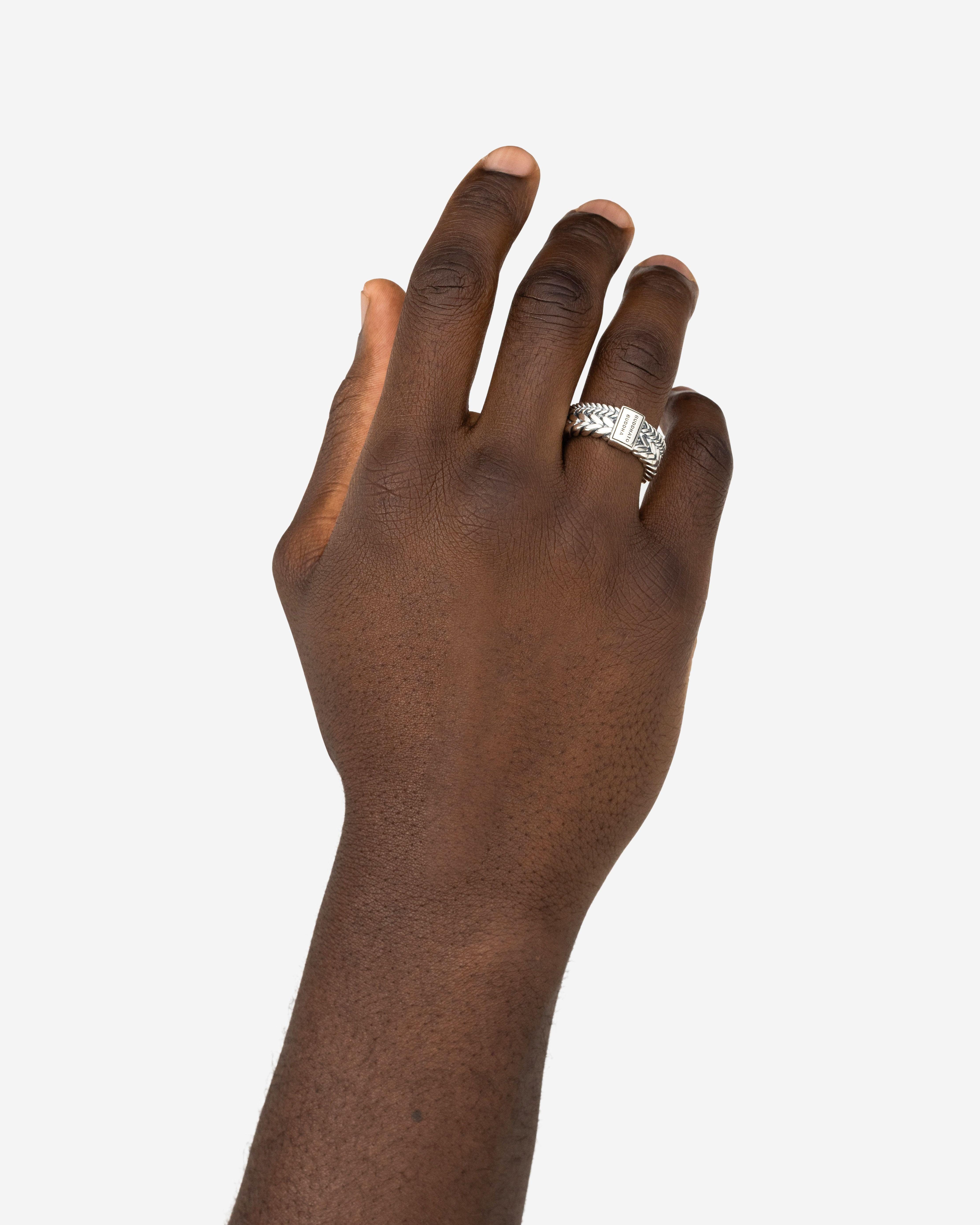 De Barbara Dubbel Ring is iconische ring gebaseerd op een van onze meest populaire schakelontwerpen, de Barbara. Deze unieke ring combineert twee variaties van de populaire Barbara-schakel: één robuust en opvallend, de ander subtiel en verfijnd. Het lijkt alsof je twee prachtige gerecycled zilveren ringen in één draagt. Ontworpen in Amsterdam en met liefde handgemaakt in Zuidoost-Azië door gepassioneerde ambachtslieden, is deze ring een tijdloos statement van stijl en kwaliteit. Welk bijzonder verhaal vertel jij met deze zilveren ring?