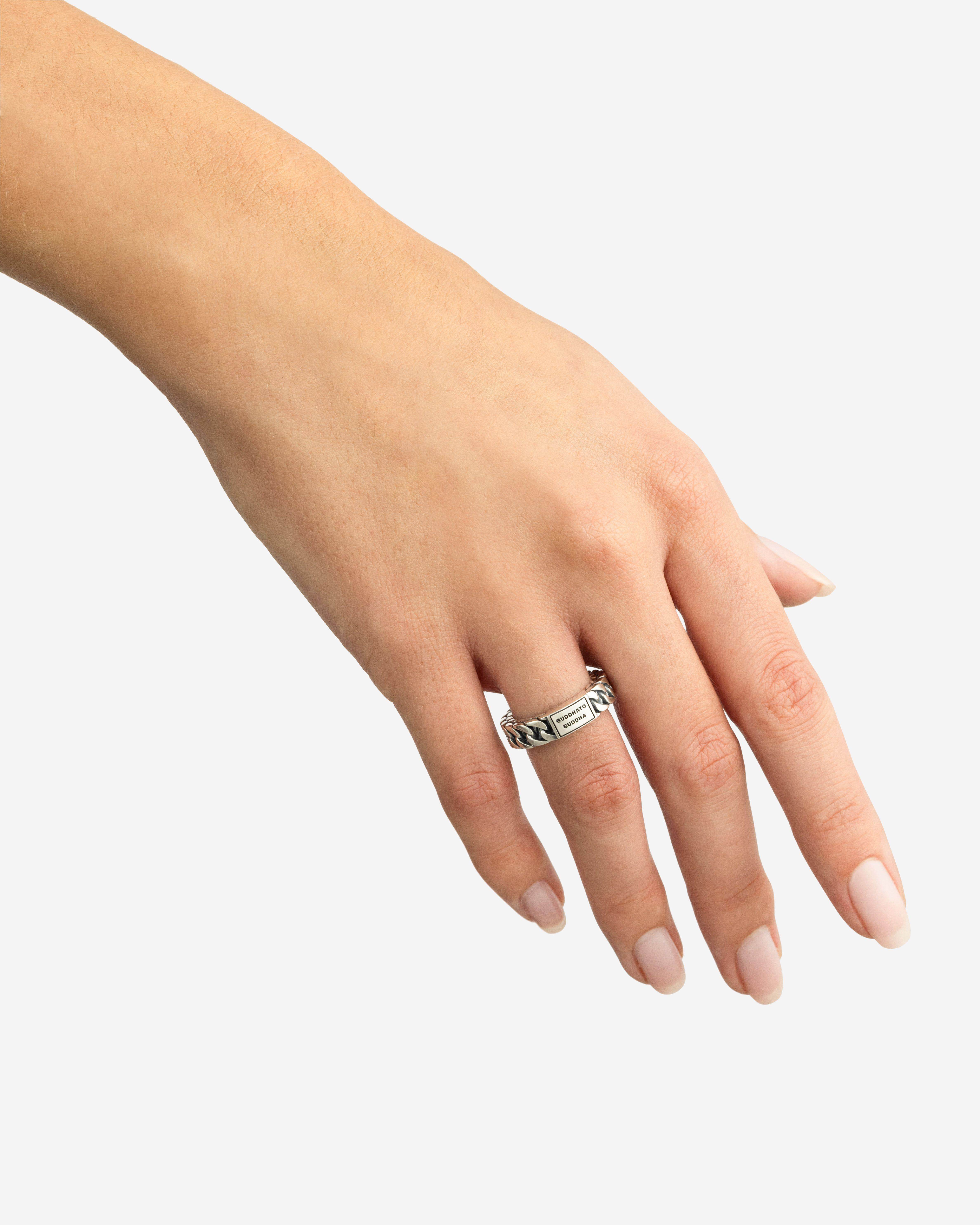 De Esther familie is een van de bekendste schakels uit de Heritage collectie. De Esther Small Ring is een werkelijk prachtige ring met geoxideerde schakels. Hierdoor is de binnenkant van de schakel donker. De stoere gevlochten schakel maakt deze sterling zilveren ring tot een echte must have! Creëer een vlotte en stoere look met deze tijdloze en handgemaakte ring. De Esther Small Ring is smaller dan de Esther Ring.