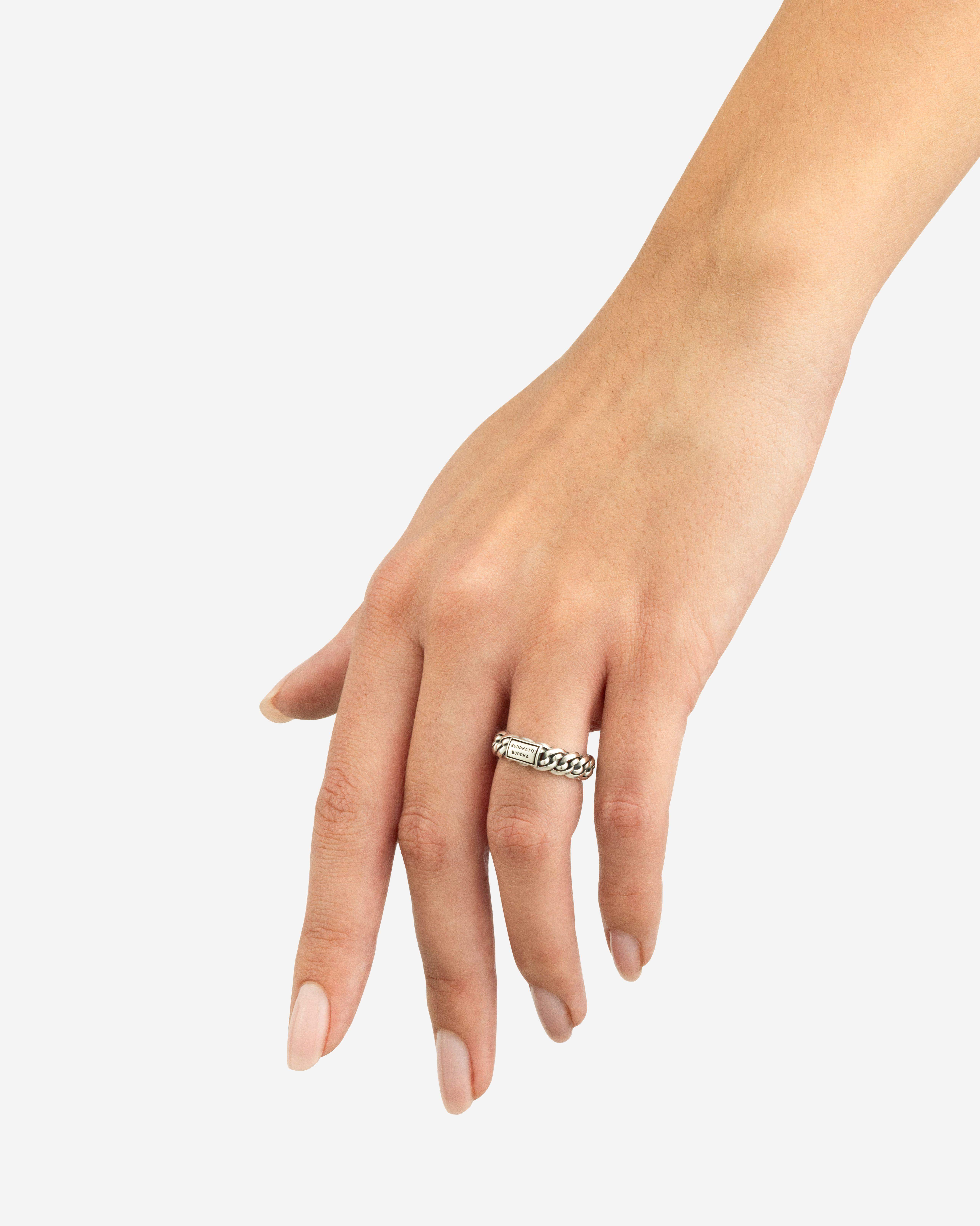 De Nathalie XS Ring, gemaakt met de nathalie schakel, is een meesterwerk van passie en vakmanschap. Deze ring symboliseert de boodschap om moedig te zijn en zonder angst datgene na te streven wat je passie is. Vervaardigd uit gerecycled zilver, is de Nathalie XS Ring niet alleen een prachtig sieraad, maar ook een verhaal van toewijding en passie. Welke herinneringen zullen zich vormen rond jouw Nathalie XS Ring?