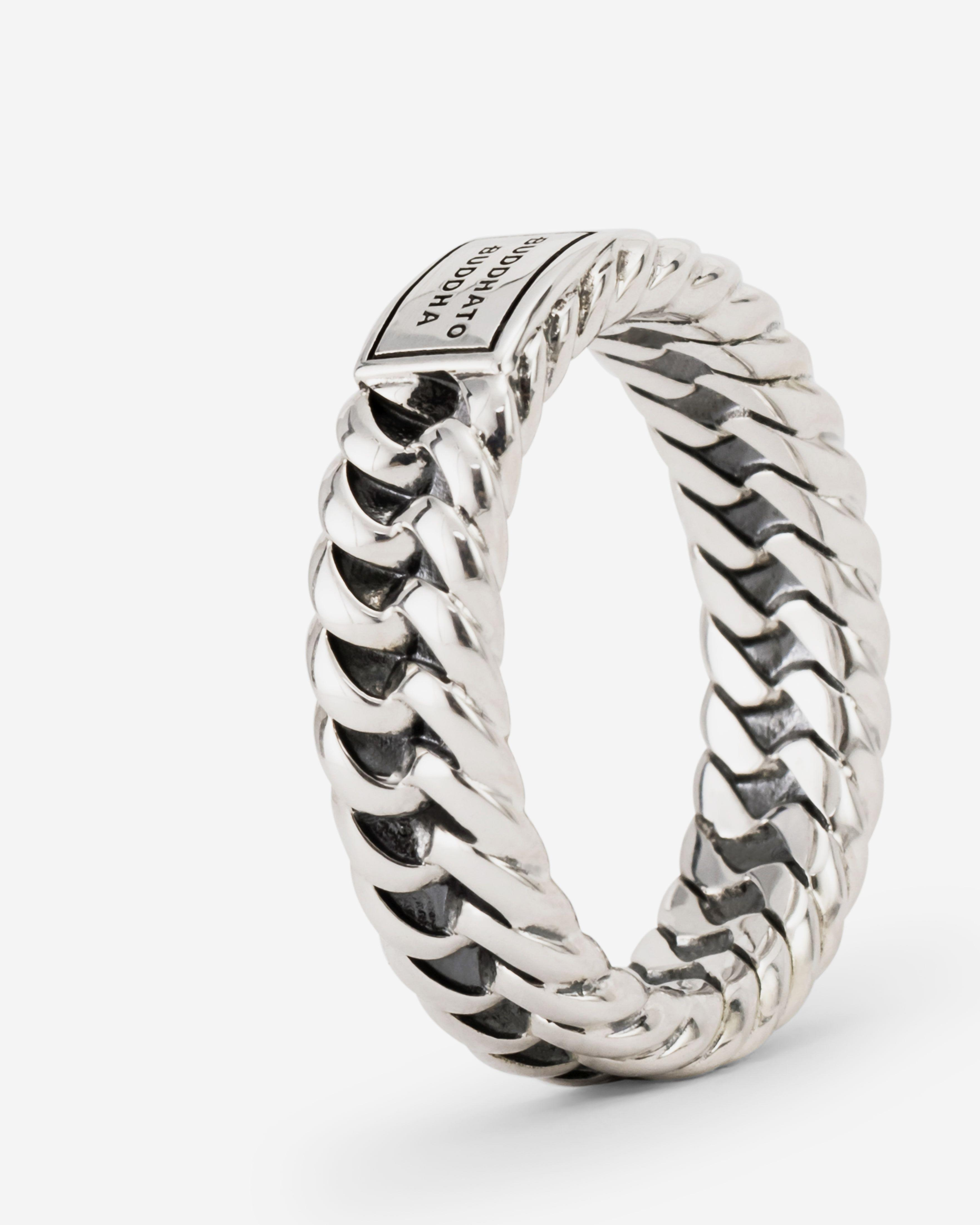 Ken je de populaire Chain-schakel? Op basis hiervan is nu ook de Chain XS-ring ontworpen. Volledig met de hand gemaakt. Deze sterling zilveren ring valt in de categorie ‘smalle ringen’ en is nog iets smaller dan de ‘Chain Small Ring’. De ring laat zich perfect combineren met andere Buddha to Buddha sieraden.