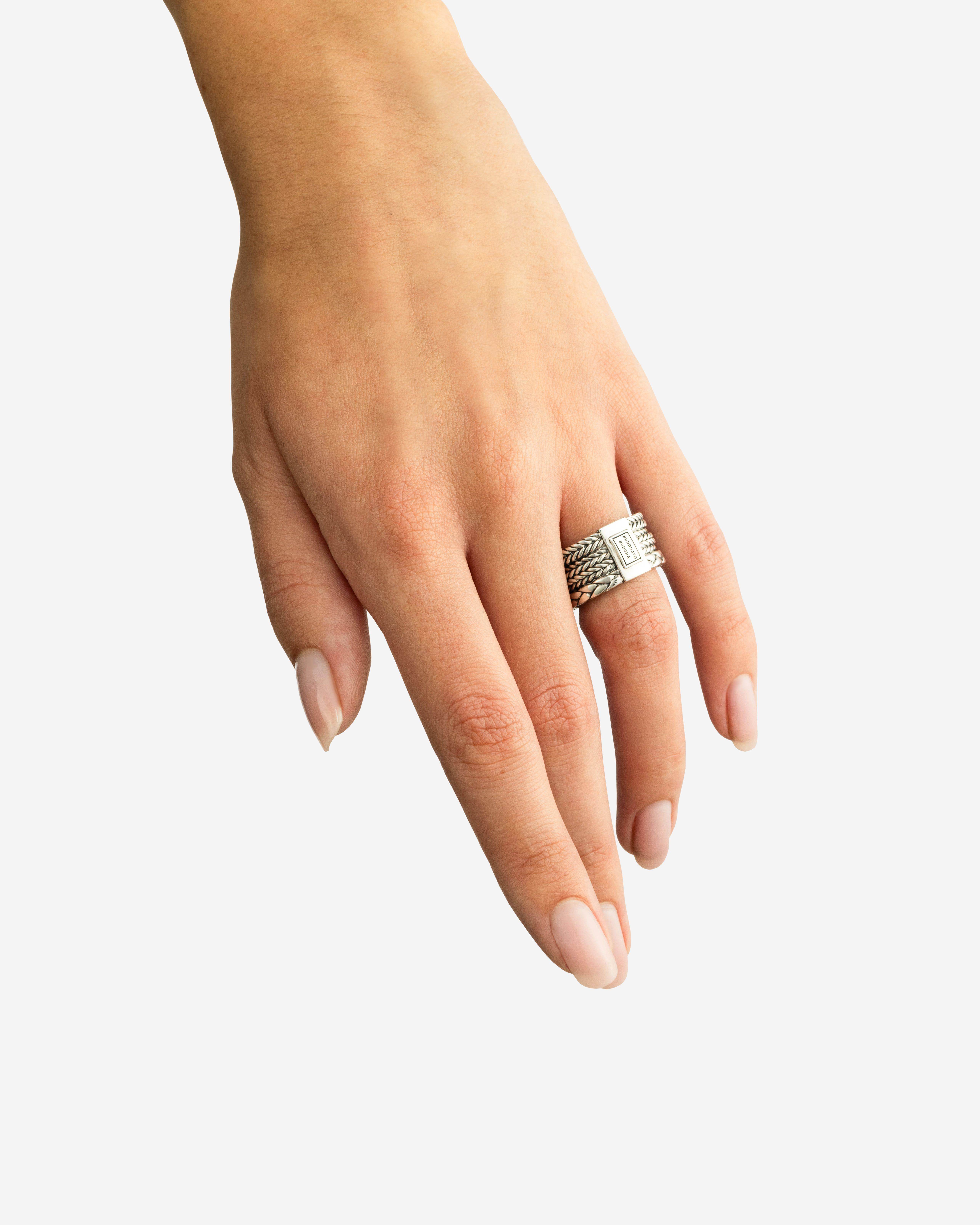 De Triple Mini Ring is een meesterwerk van samensmelting en stijl. Deze ring brengt de geliefde schakels van Barbara, Ellen en George samen in één harmonieus ontwerp. Elk detail is zorgvuldig vervaardigd uit gerecycled zilver, wat getuigt van onze toewijding aan kwaliteit en traditie. Ontworpen in Amsterdam en met passie handgemaakt in Zuidoost-Azië, is de Triple Mini Ring niet alleen een sieraad, maar een verhaal van verbinding. Welk verhaal vertel jij met deze iconische ring?