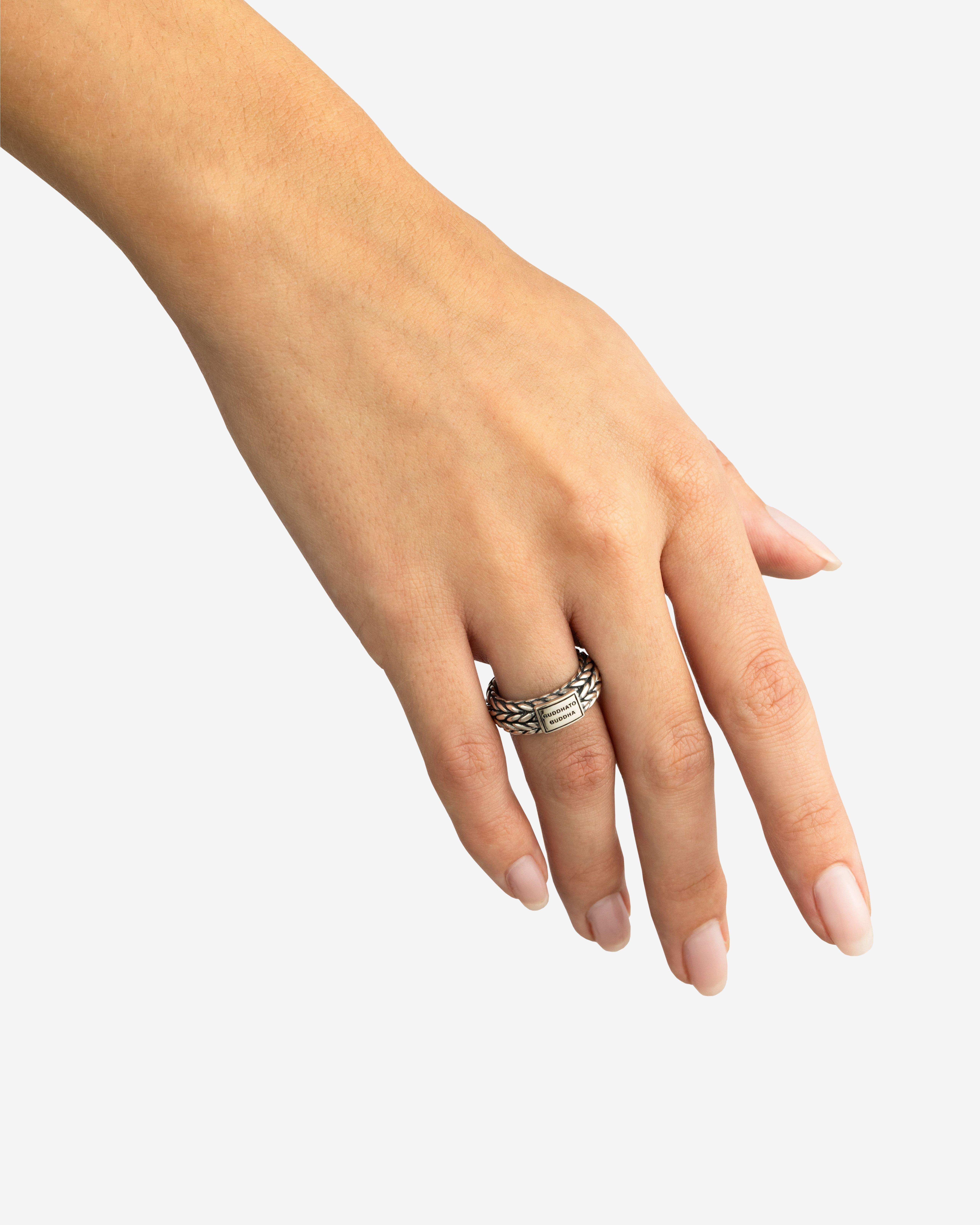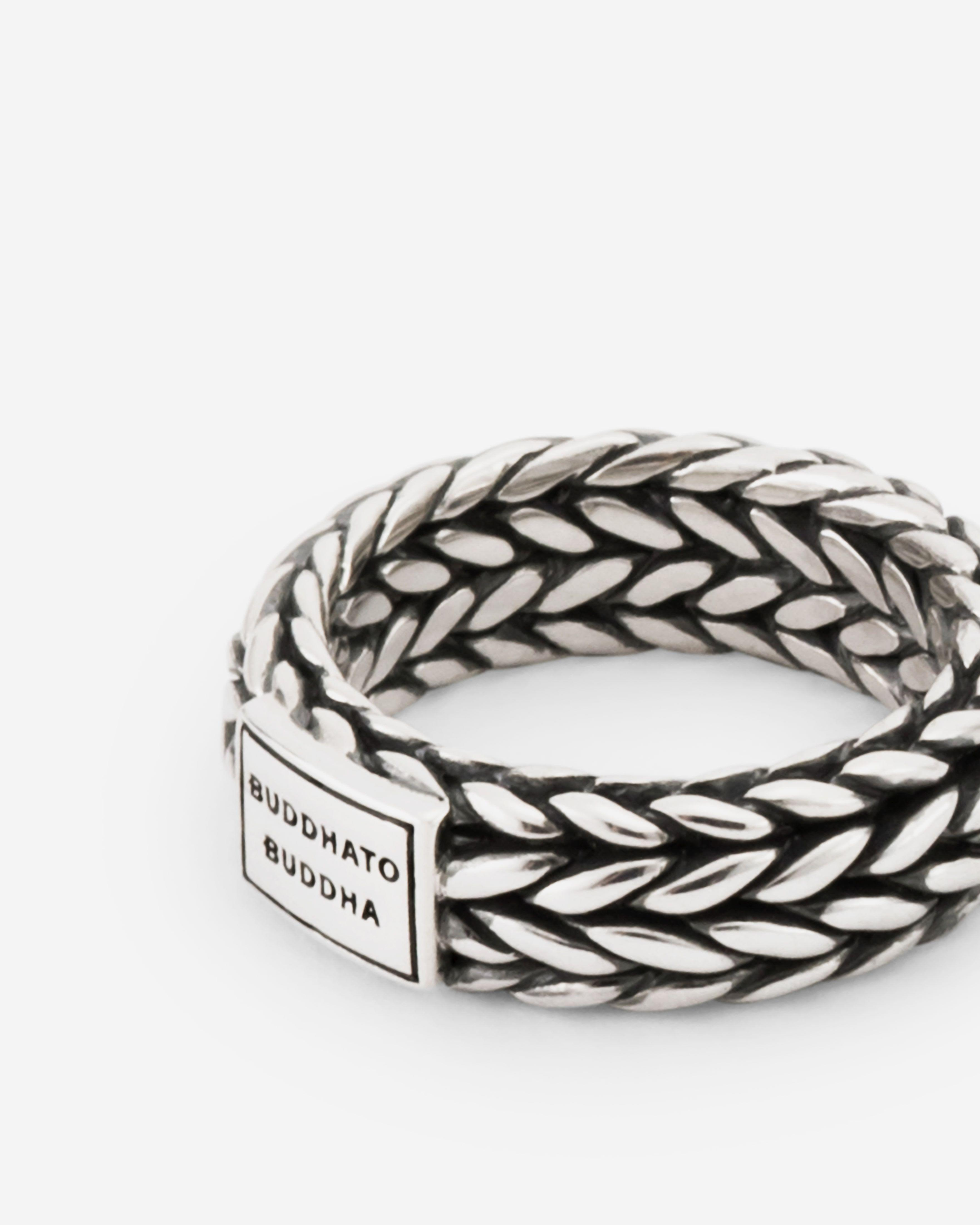 De Ellen Ring is een verfijnde fusie van subtiliteit en karakter, die onderdeel is van de populaire Ellen-collectie - een van de meest subtiele schakels in onze collectie. Deze ring, met zijn kenmerkende geweven ontwerp, staat voor verbinding. Elk facet is met precisie vervaardigd, waardoor het pure vakmanschap van Buddha to Buddha tot leven komen. Gemaakt van gerecycled zilver, is deze ring niet alleen een tijdloos sieraad, maar ook een belichaming van duurzaamheid en authenticiteit. Ontstaan in de creatieve geest van Amsterdam en met zorg handgemaakt in Zuidoost-Azië, is de Ellen Small Ring zowel elegant als veelzijdig. Ga jij het leven vieren door jezelf of iemand anders te trakteren op dit krachtige sieraad?