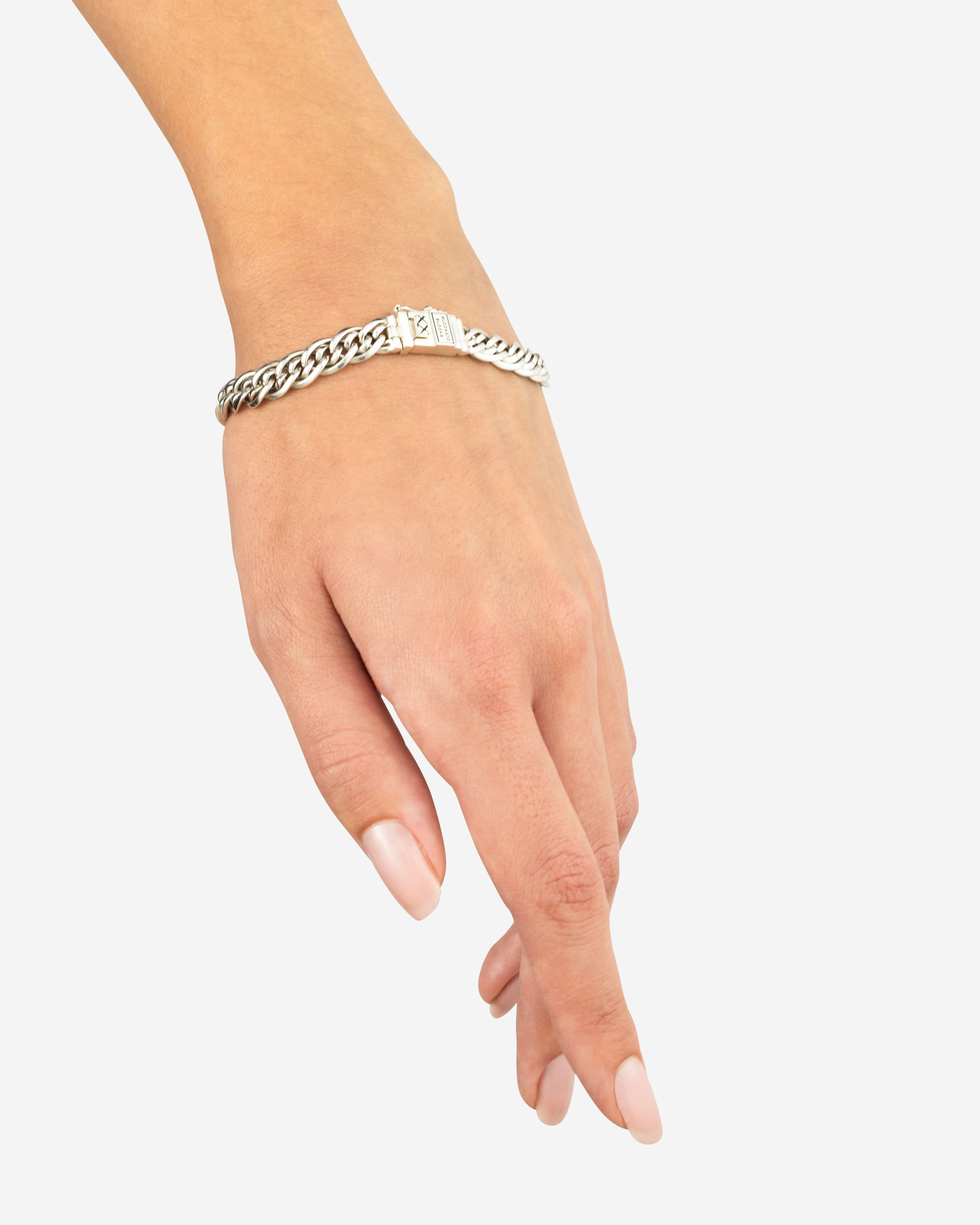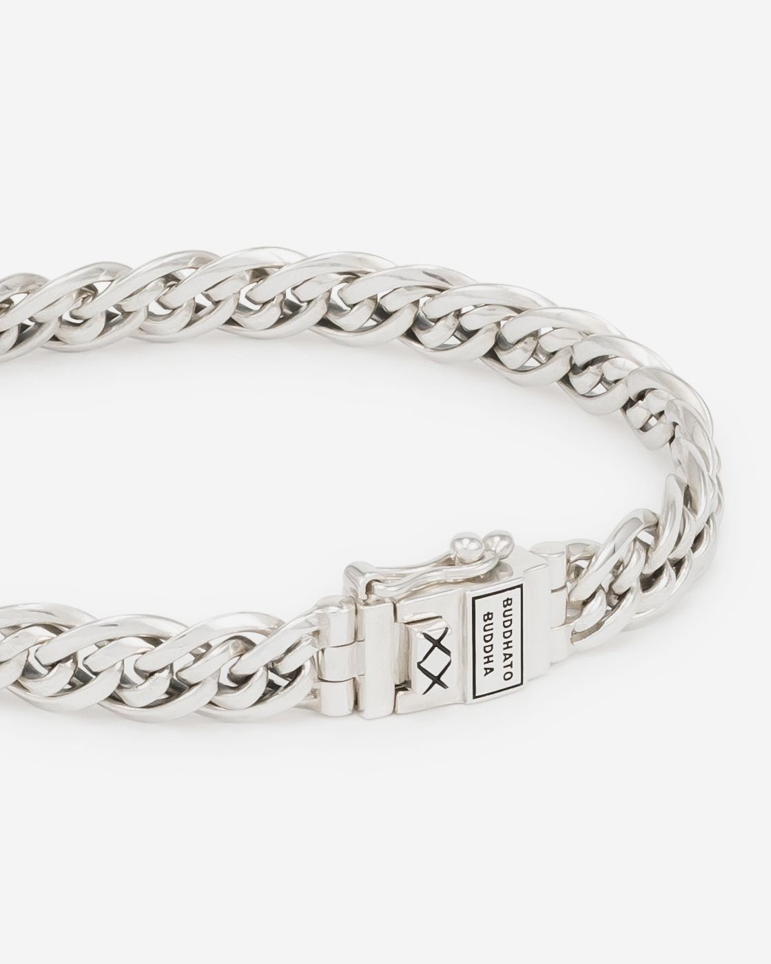 De Nathalie Mini is een subtiele variant van een van onze meest iconische Buddha to Buddha armbanden. Het ontwerp is een van de bekendste schakels uit onze collectie! De aparte dubbele schakels die typisch zijn voor de Nathalie maakt deze sterling zilveren armband tot een echt meesterwerk. Elke schakel is zorgvuldig met de hand gevormd, een getuigenis van de toewijding en het vakmanschap van onze ambachtslieden. Gemaakt van gerecycled premium zilver, staat deze armband voor een perfecte balans tussen duurzaamheid, kwaliteit en stijl. De Nathalie XS Armband is meer dan alleen een sieraad; het is een verhaal van passie, kunst en connectie. Ontworpen in Amsterdam en met de hand gemaakt in Zuid-Oost Azië.