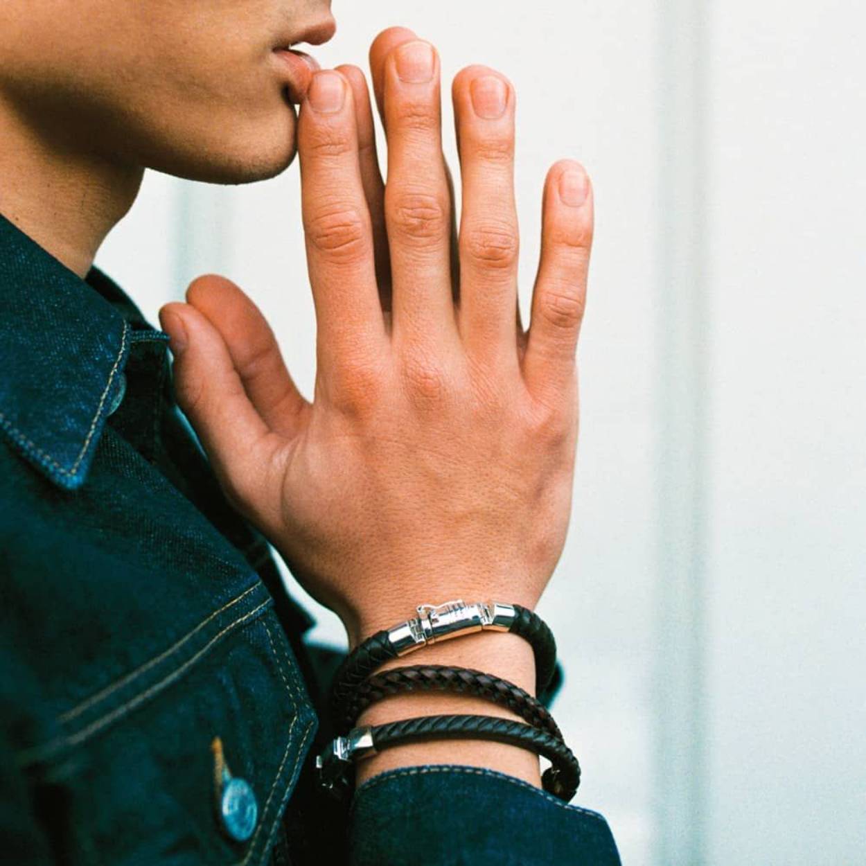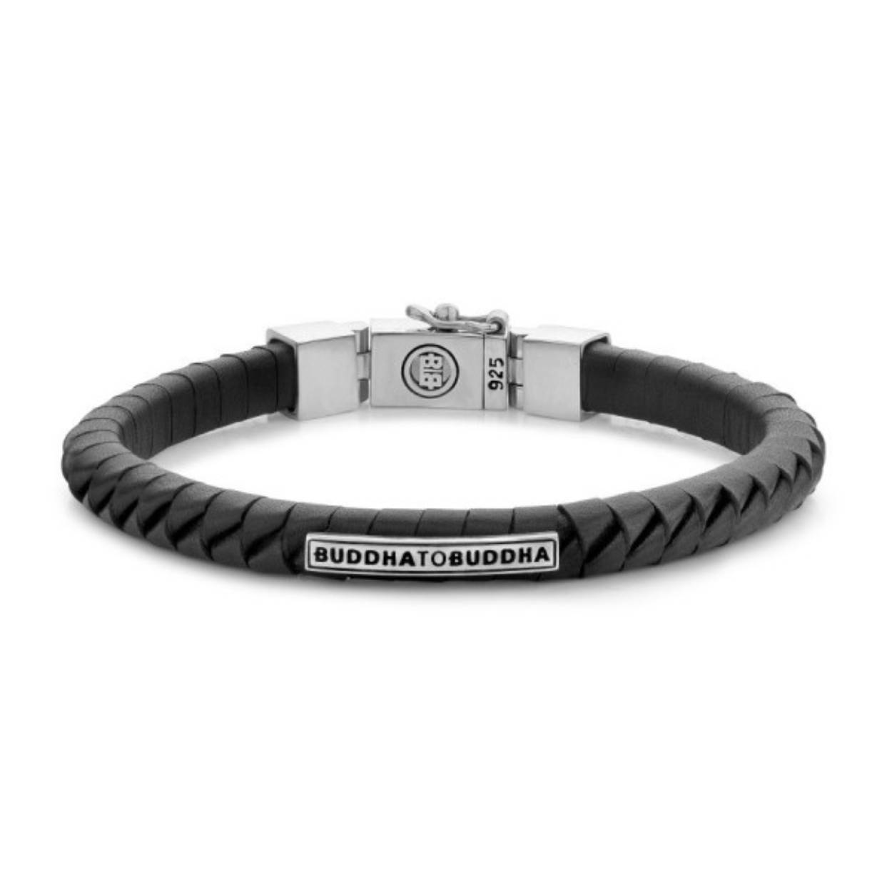 armband 40186 Buddha To Buddha zwart leer gevlochten fantasie armband met 925 zilveren baksluiting en veiligheidsachtje. Model - 162BL-Komang -E- 8718997011054