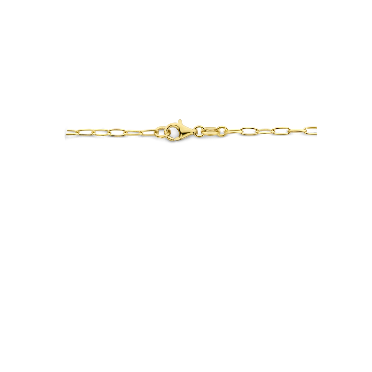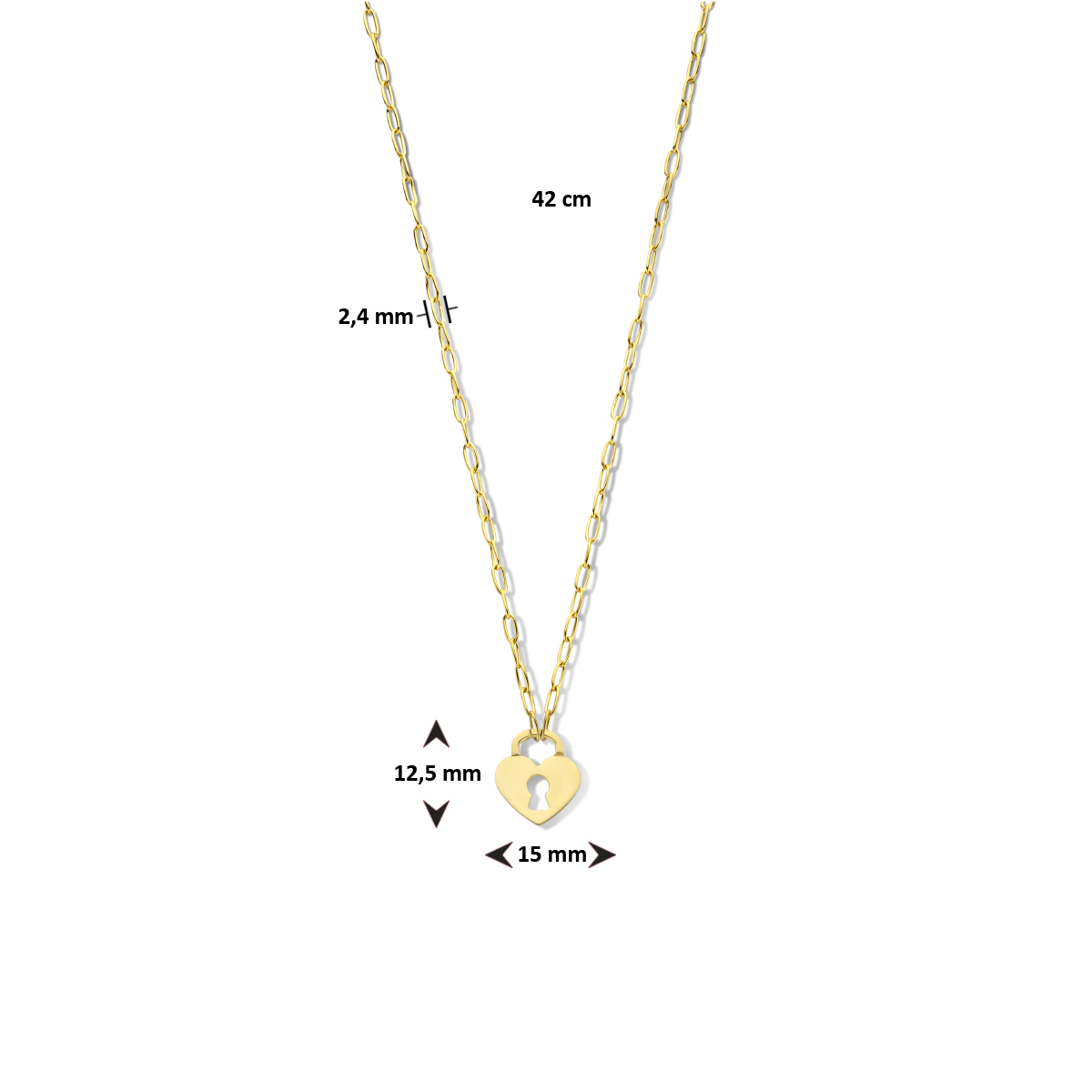 Geelgoud op 925 zilveren collier uitgevoerd met een hartjes slot en een karabijn sluiting. Het collier heeft een draaglengte van 42cm. Geen garantie op de plating.