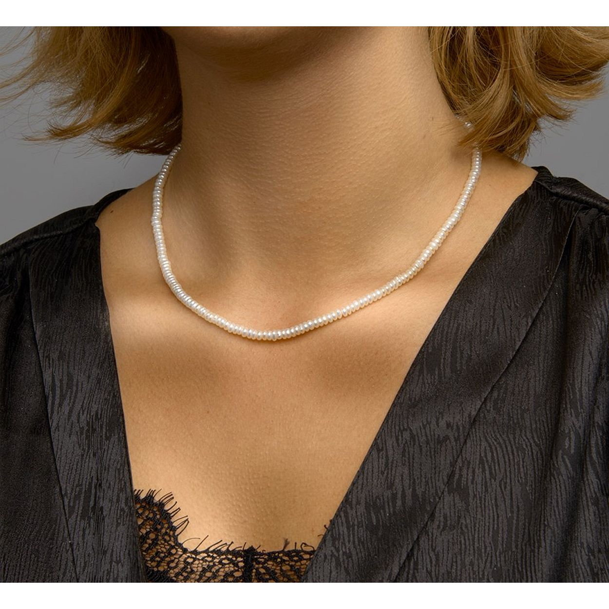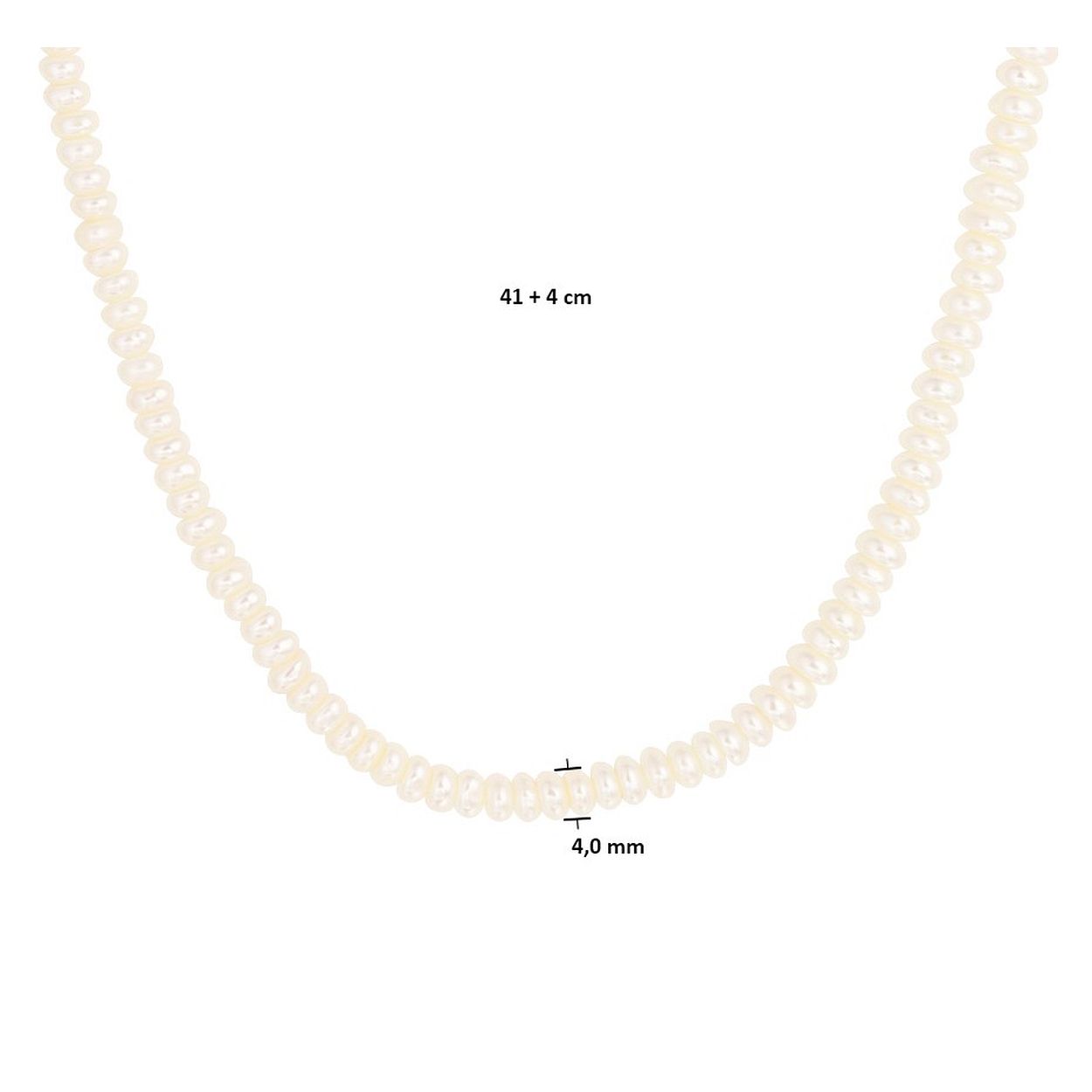 Geelgoud op 925 zilveren collier uitgevoerd met parels en een stevige karabijn sluiting. Het collier heeft een draaglengte van 41cm met een extensie van 4cm.