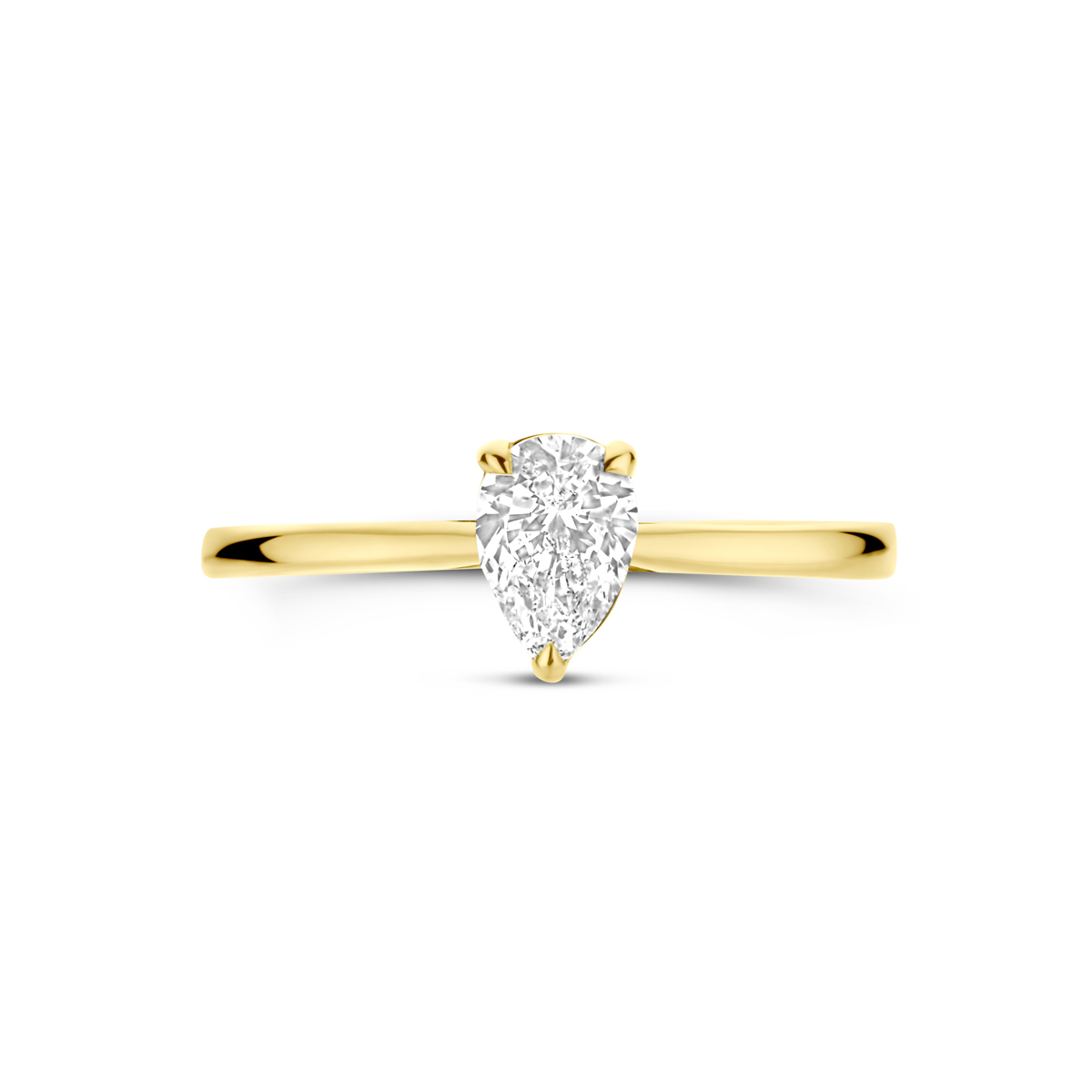 14k Geelgouden ring uitgevoerd met lab grown diamant. De ring heeft een breedte van 7mm. Het diamantgewicht is 0.50ct. Lab grown diamanten zijn diamanten die ontstaan in een laboratorium. Onder extreem hoge druk en temperatuur wordt het natuurlijk ontstaansproces nagebootst met als eindresultaat een diamant met dezelfde chemische eigenschappen maar met een andere oorsprong.