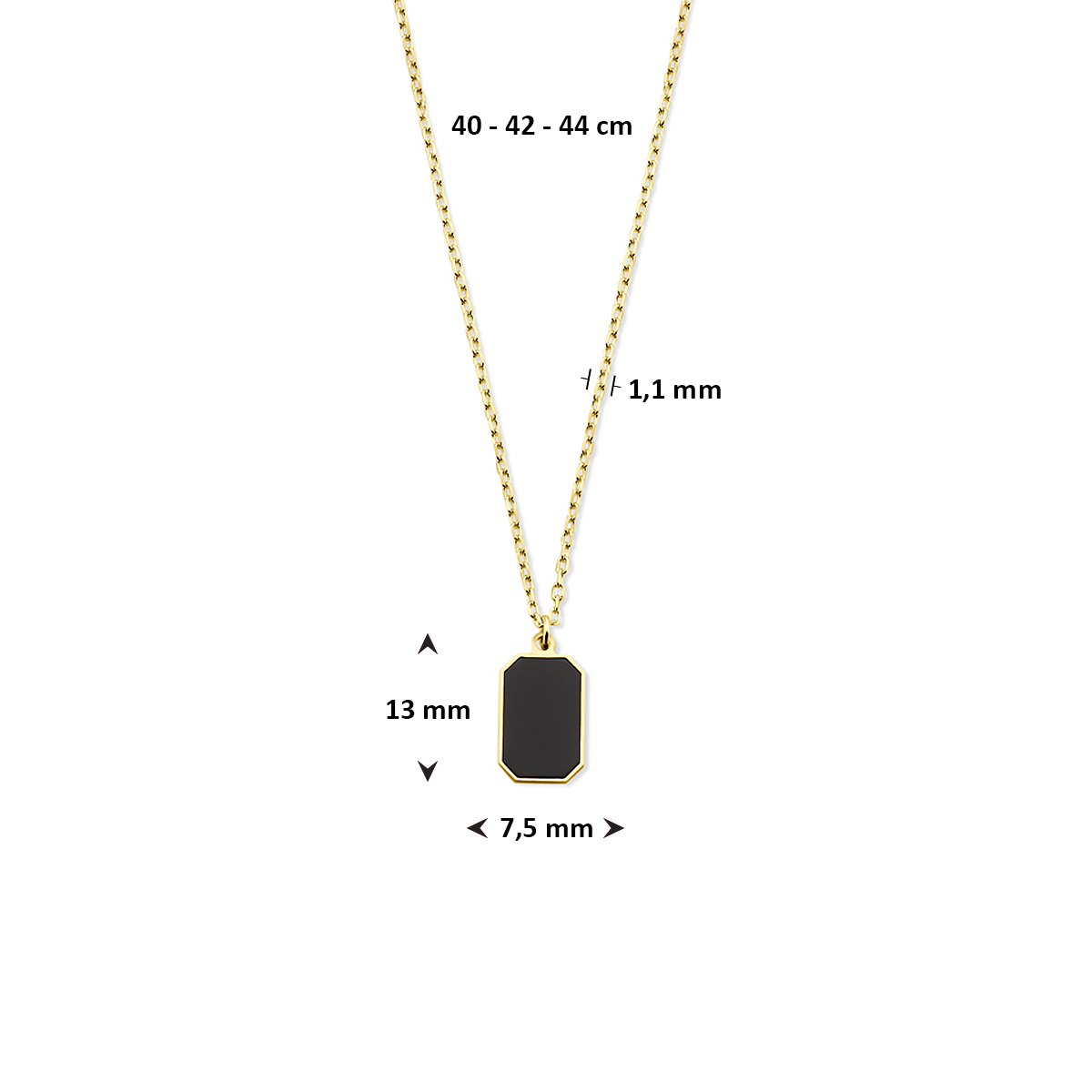 14k Geelgouden collier uitgevoerd met onyx. Het collier heeft draaglengtes van 41-42-44cm.