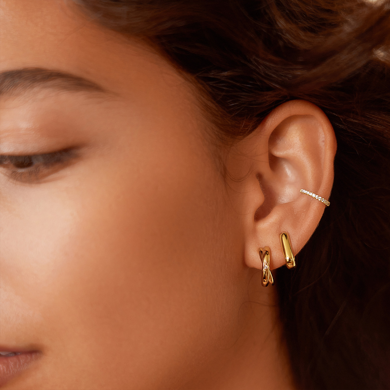Als je klaar bent om je hoepelcollectie een unieke update te geven, dan zijn deze prachtige double cross hoepels de perfecte keuze. Ze zijn de trendy toevoeging waarvan je niet wist dat die nog ontbrak in je sieradencollectie. Draag ze als een statement stuk of combineer ze met een oor vol studs en manchetten.