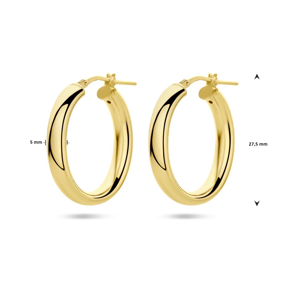 Verguld op 925 zilveren oorringen met een afmeting van 27.5x5mm. Geen garantie op de plating.