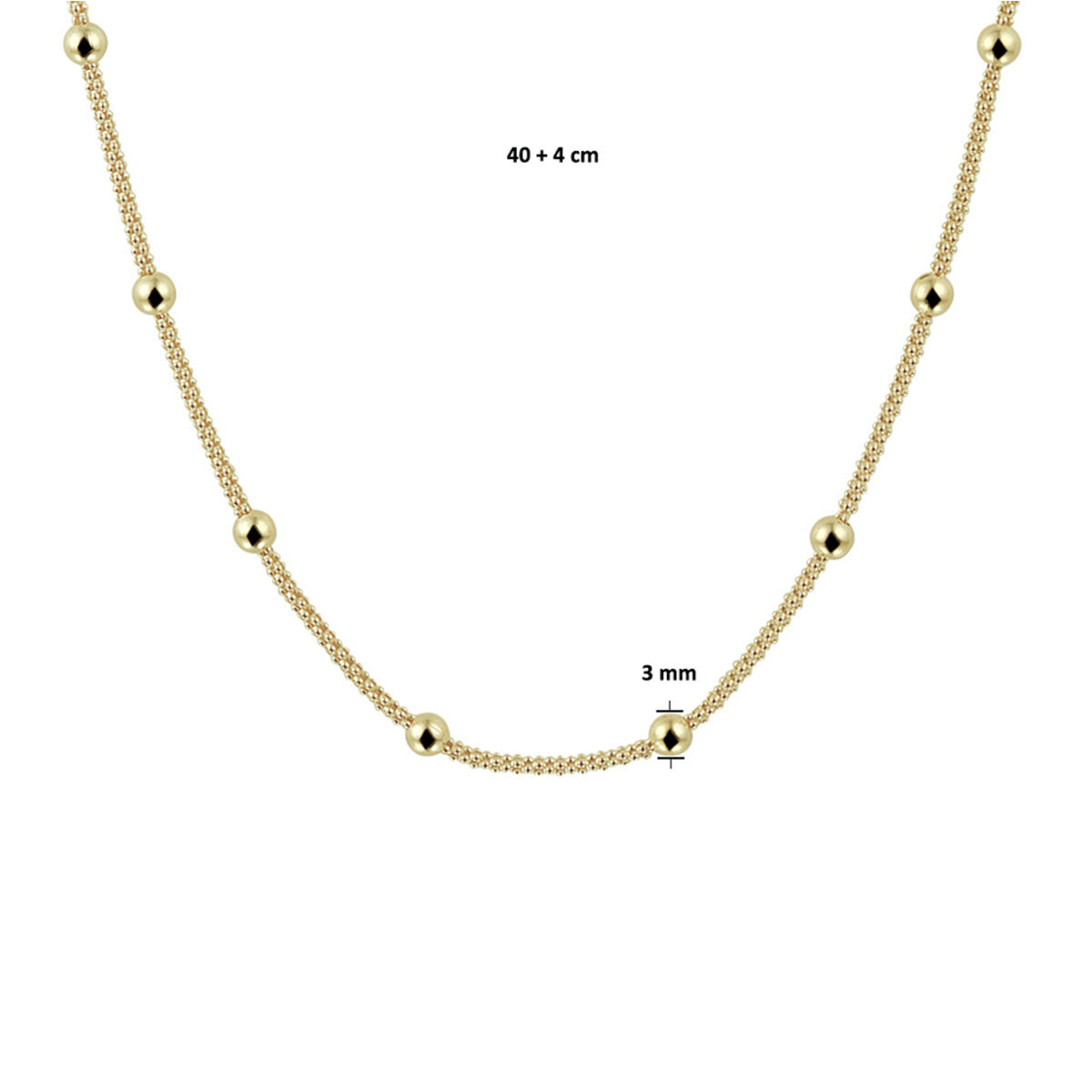 Trendy verguld op zilveren collier met een draaglengte van 40cm en een extensie van 4cm. Minimalistisch design uitgevoerd met bolletjes van 3mm voor een exclusieve uitstraling. Geen garantie op plating.