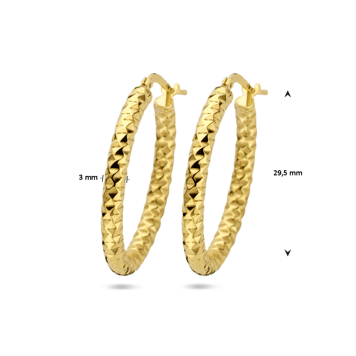 Verguld op 925 zilveren oorringen. De oorringen hebben een totale hoogte van 29.5 mm. Geen garantie op plating.