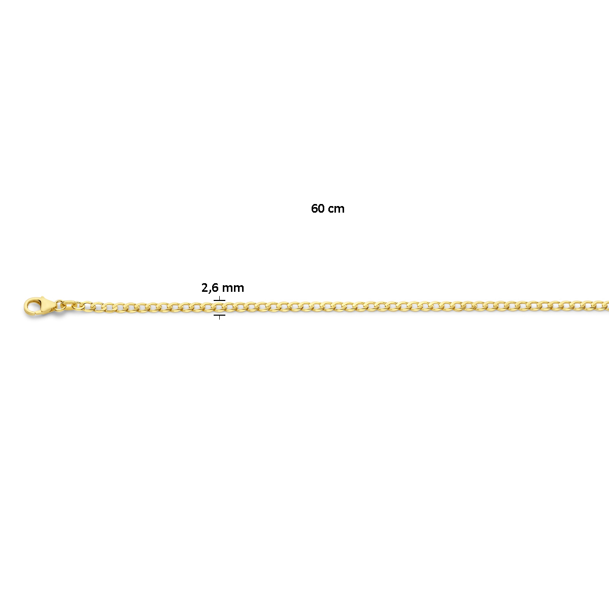 14k Geelgouden collier met een gourmette schakel van 2.6mm en een karabijn sluiting.