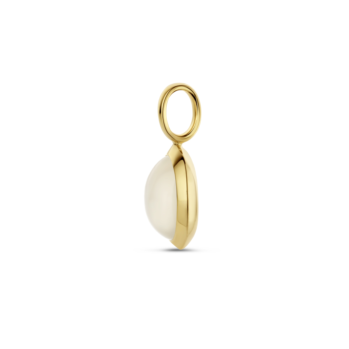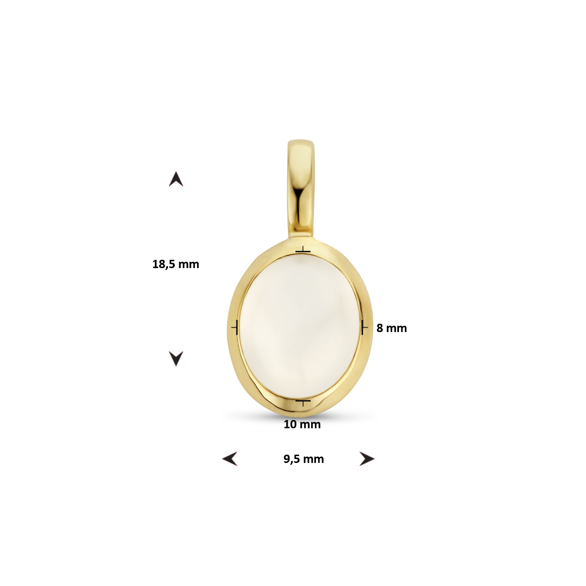 14k Geelgouden hanger uitgevoerd met een schitterende maansteen. De hanger heeft een afmeting van 18.5x9.5mm.