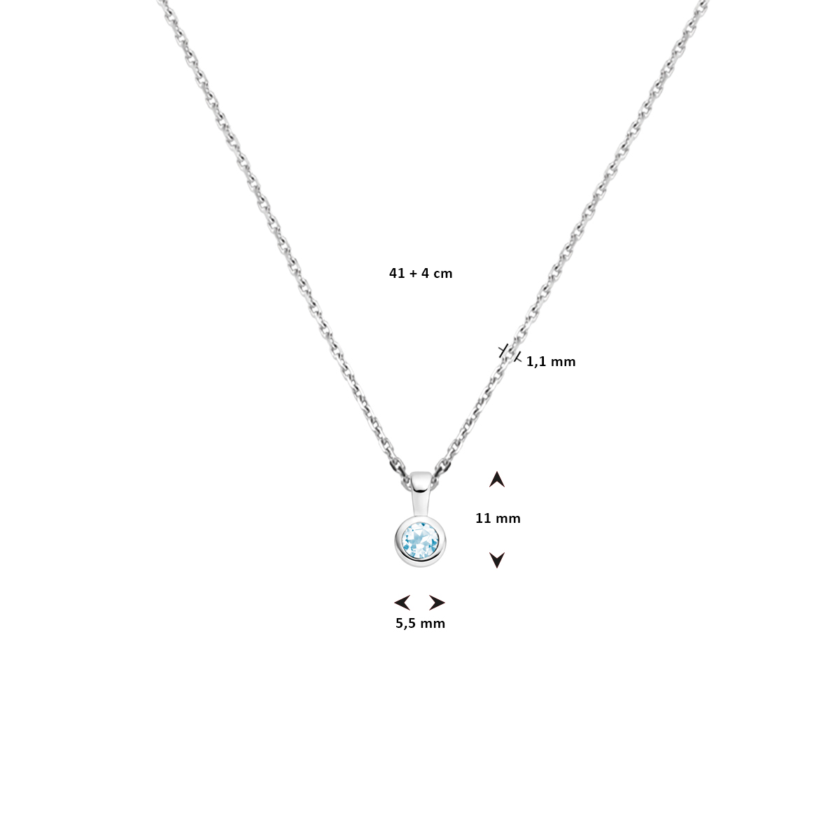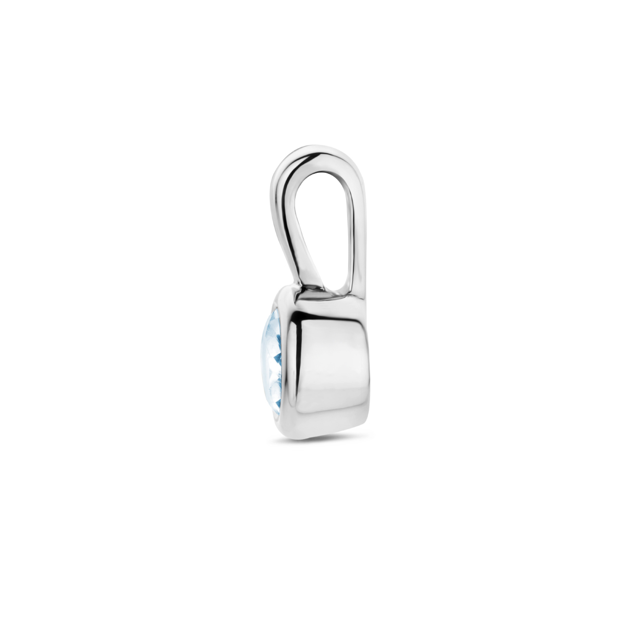 Gerhodineerd 925 geboortesteen zilveren hanger uitgevoerd met een schitterende aquamarijn. De hanger heeft een afmeting van 11x5.5mm. De aquamarijn heeft een steengewicht van 0.23ct.