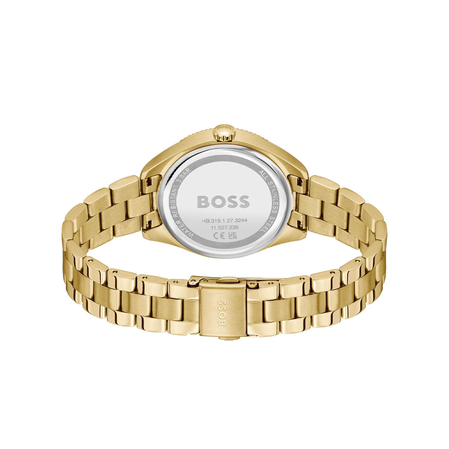 Dit BOSS horloge uit de SAGE SPORT serie met artikelnr: HB1502803 heeft een luxe uitstraling. Zeer geschikt voor de moderne stijlvolle vrouw van nu. Het dameshorloge valt op door zijn stalen goudkleurige horlogekast met een gekartelde goudkleurige bezel en een goudkleurige sunray wijzerplaat met een dag,- datum,- en 24-uursaanduiding. De wijzers en uurstrepen zijn fijn gefaceteerd. Aan de kast zit een stalen goudkleurige schakelband met een vouwsluiting. Het horloge heeft een doorsnee van 34mm een mineraalglas en is 3ATM.