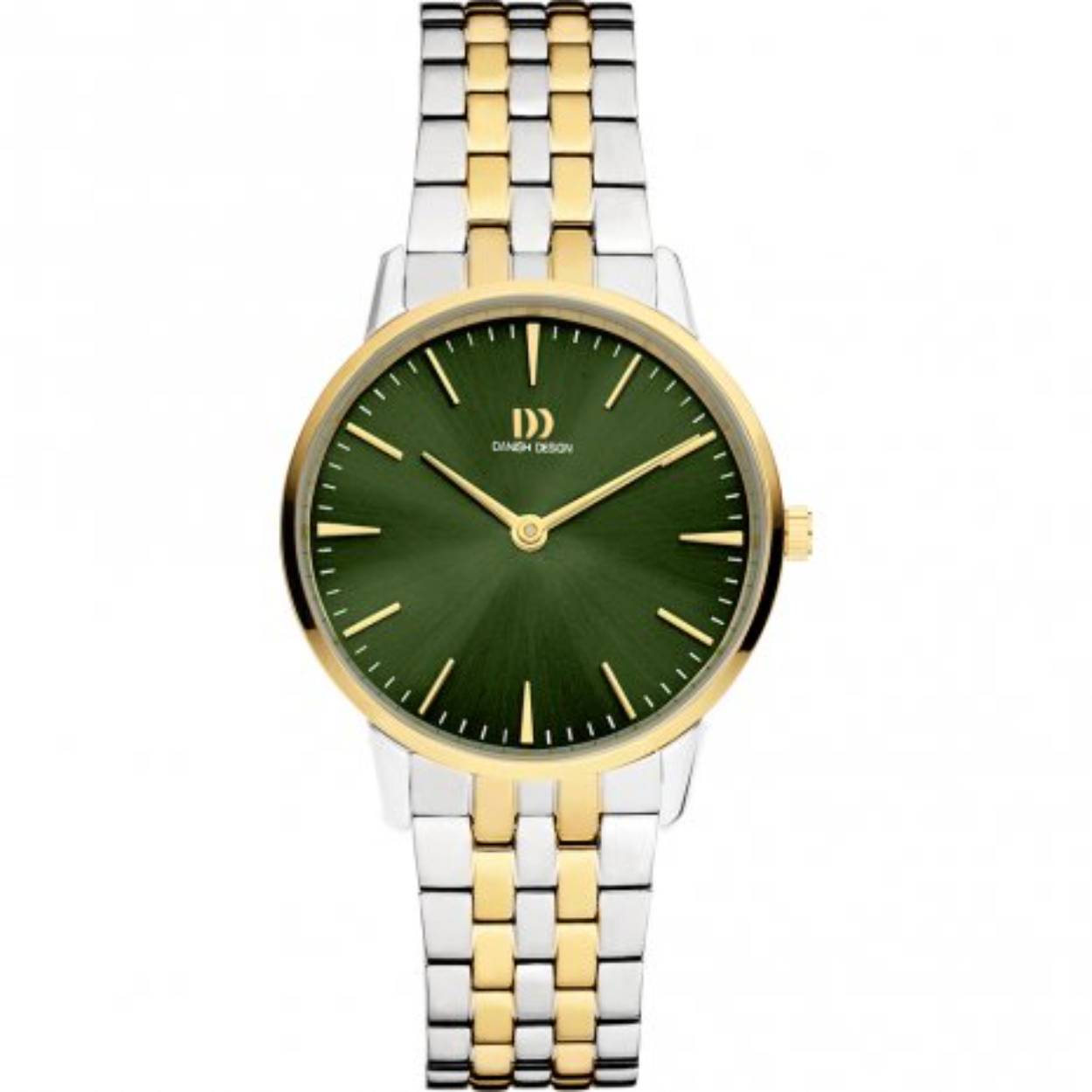 Danish Design dameshorloge uit de Akilia serie, dit model heeft een diepgroene wijzerplaat en een mooie bicolor schakelband