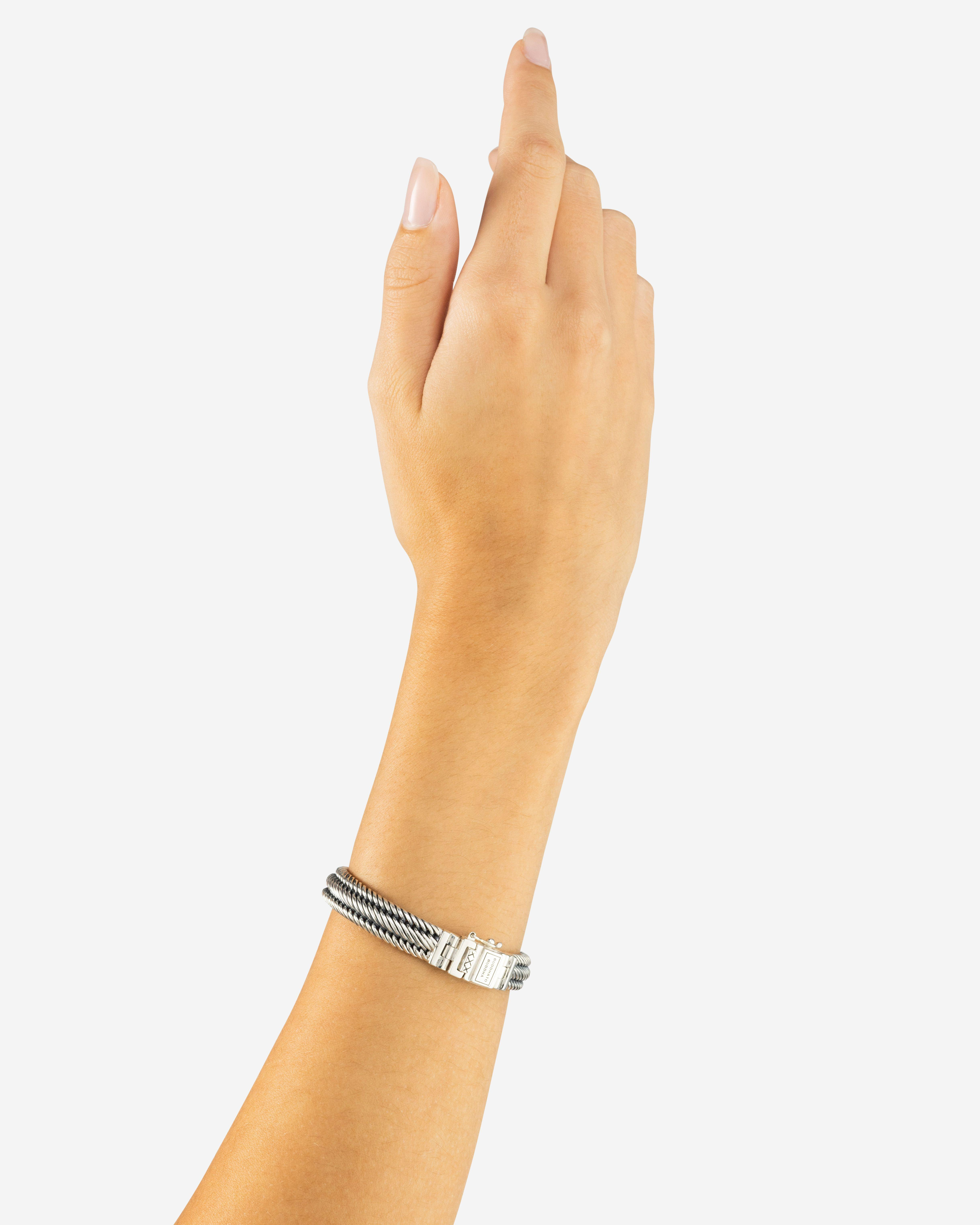 De Edwin XS Armband is een meesterwerk van vakmanschap en precisie. Deze geweven creatie komt tot leven door handgemaakte schakels die zorgvuldig worden gedraaid en geknipt uit het fijnste zilverdraad. Met maar liefst 74-80 van deze schakels in één armband, is het een kunstwerk dat drie dagen vakmanschap vereist. Elke schakel moet perfect passen, zodat de armband altijd op zijn plaats valt. De Edwin XS is smallere variant dan de iconische Edwin en bestaat volledig uit gerecycled premium zilver. Ethiek en esthetiek smelten samen in dit product. Handgemaakt, om een leven lang mee te gaan.