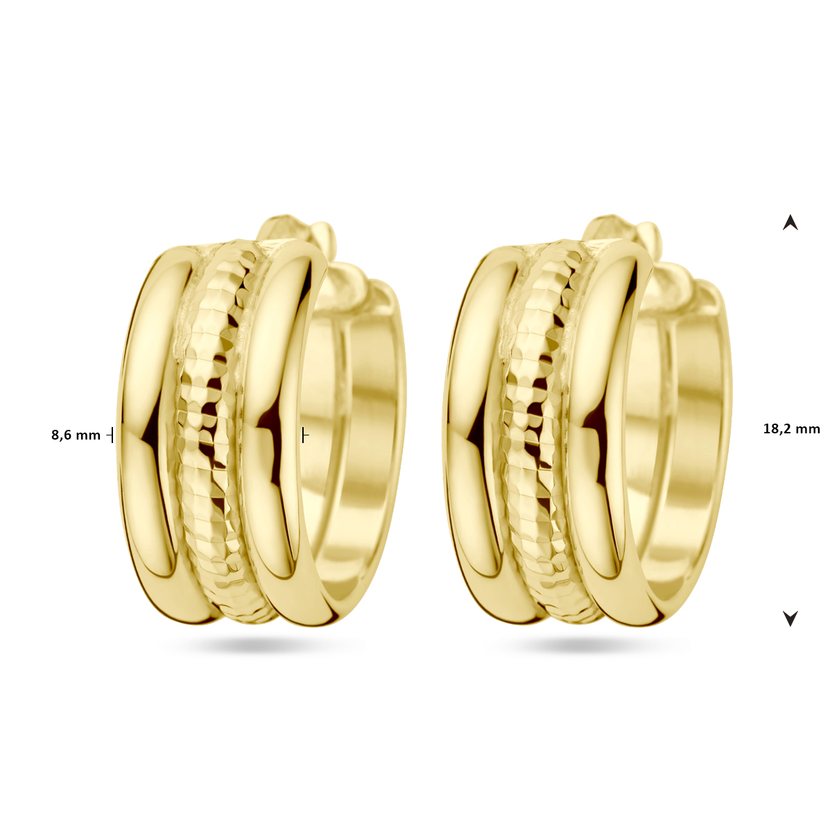 Geelgoud op 925 zilveren klapoorringen. Geen garantie op de plating.  De oorringen hebben een diameter van 18.2mm.