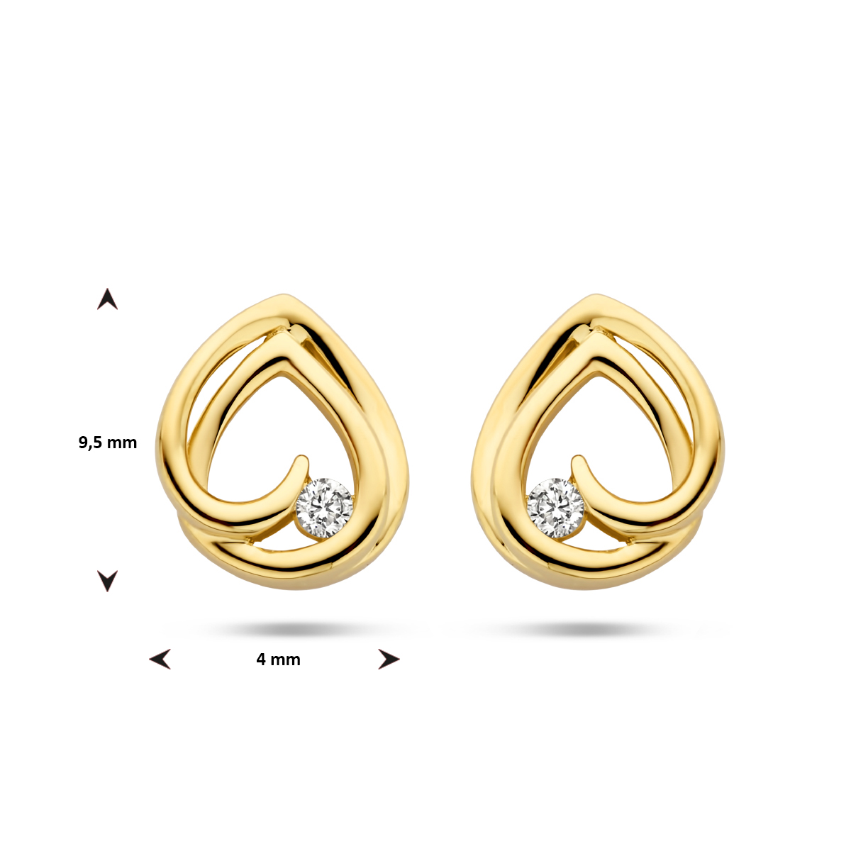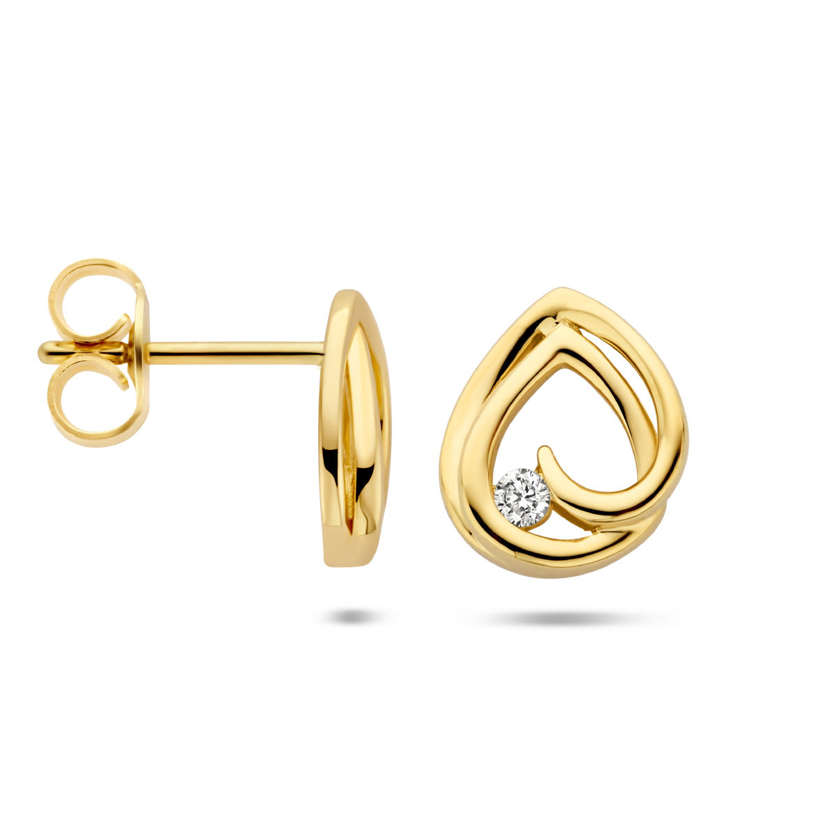 14k Geelgouden oorknoppen uitgevoerd met een schitterende diamant. De oorknoppen hebben een totale hoogte van 9.5mm.
