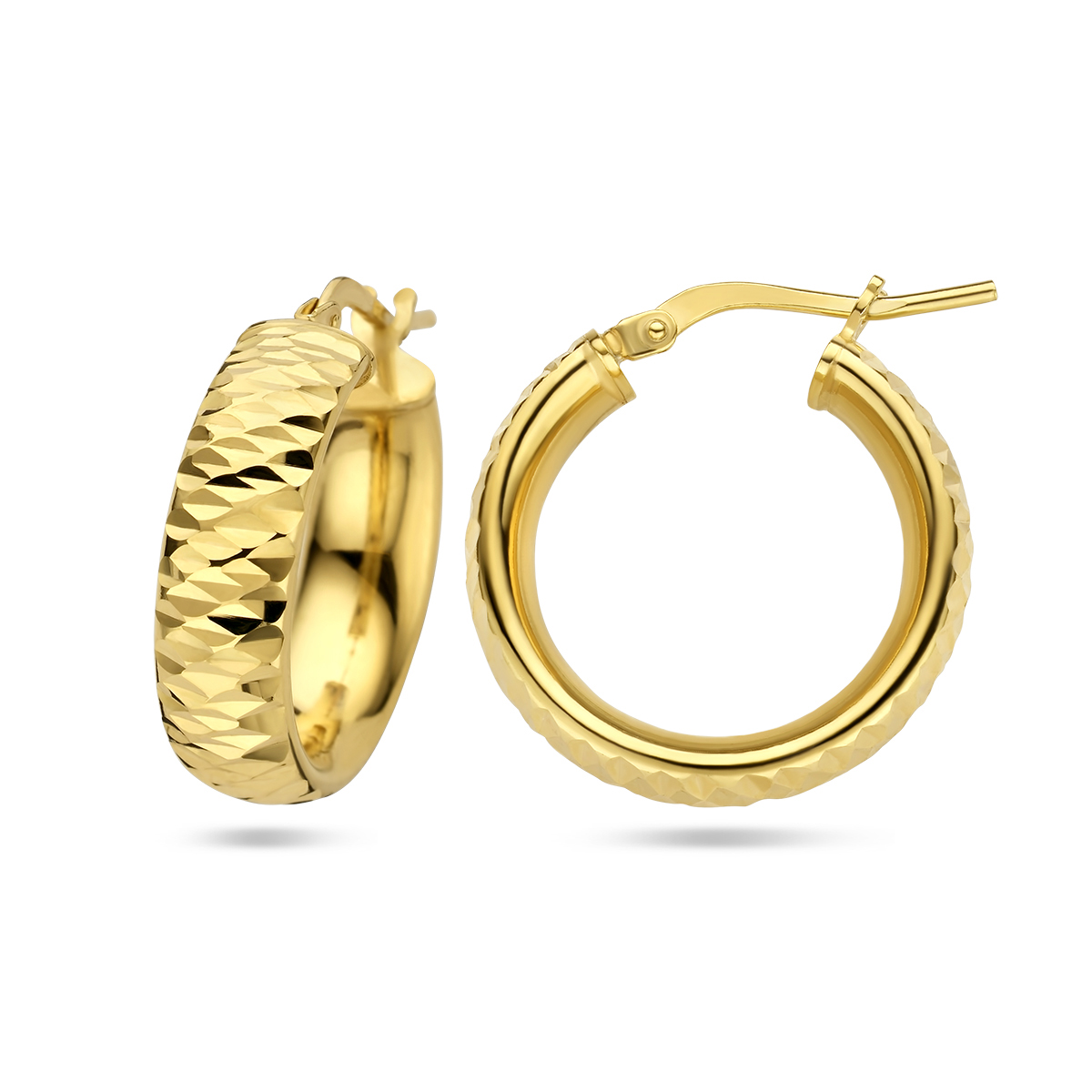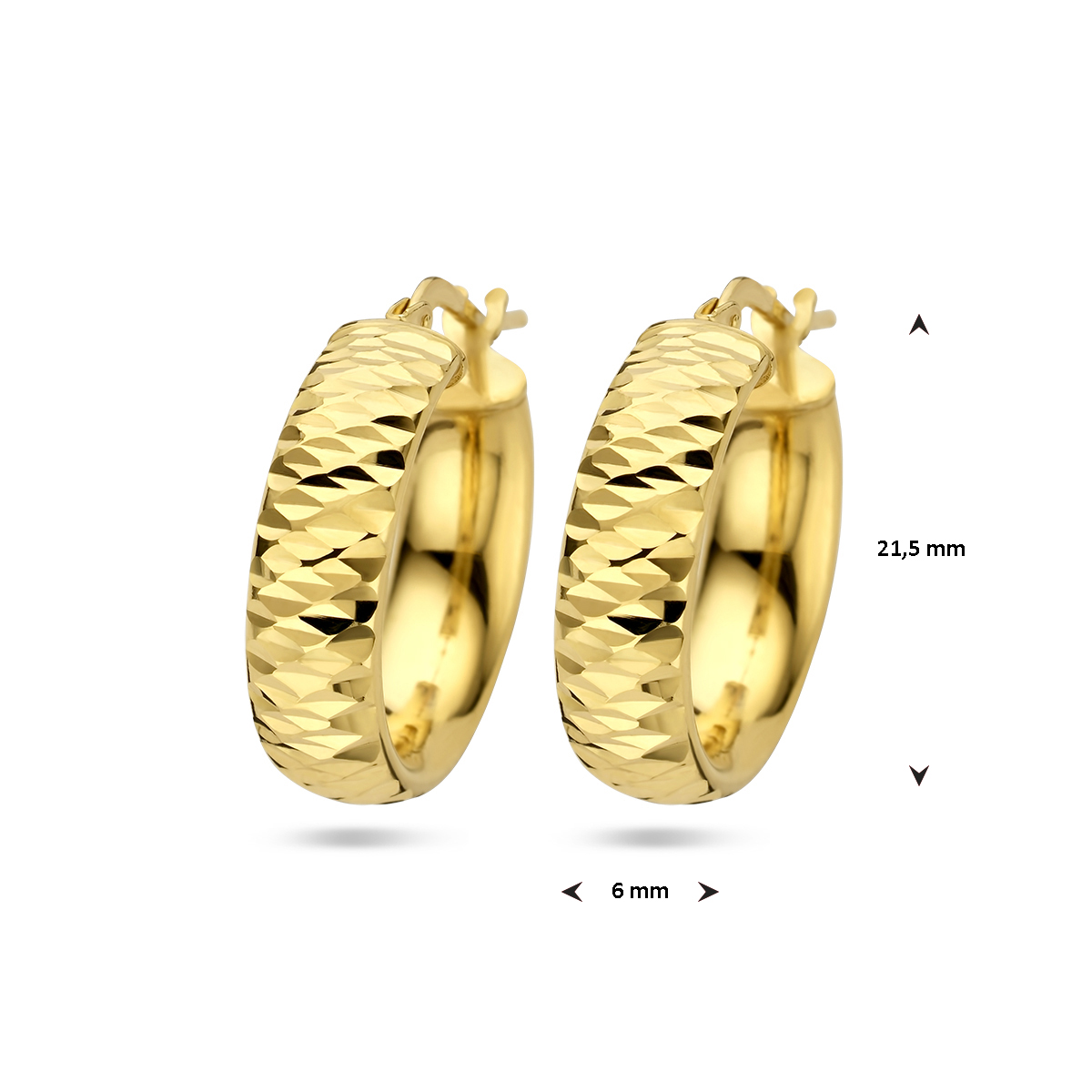 Geelgoud op 925 zilveren oorringen met een breedte van 6mm. Geen garantie op plating.