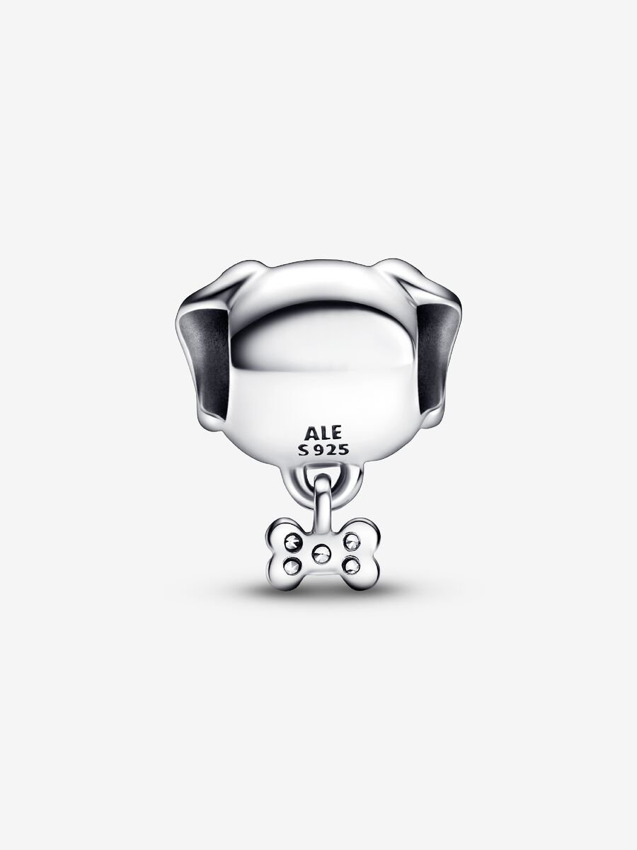 Laat je liefde voor je viervoeter stralen met de Pet Dog & Bone Bedel. Dit retro sieraad met een moderne touch is gemaakt van sterlingzilver. Het is versierd met gegraveerde lijnen op het gezicht en sprankelende pavé op de botvormige hanger. Draag hem aan een armband of bedelhouder om te laten zien hoe speciaal je huisdier voor je is.