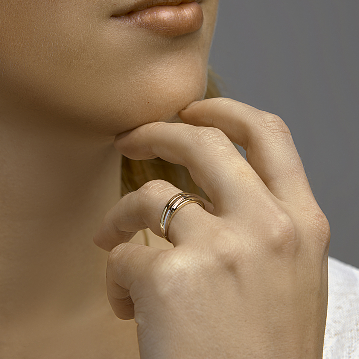 14k Bicolor geel- en witgouden ring. De ring heeft een breedte van 6mm.