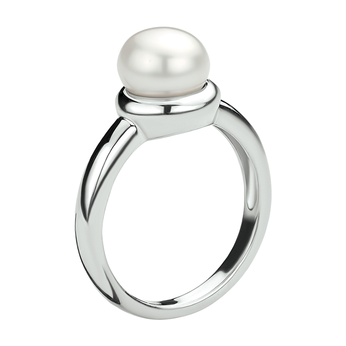 Beschrijving: Gerhodineerd zilveren ring met zoetwaterparel.
