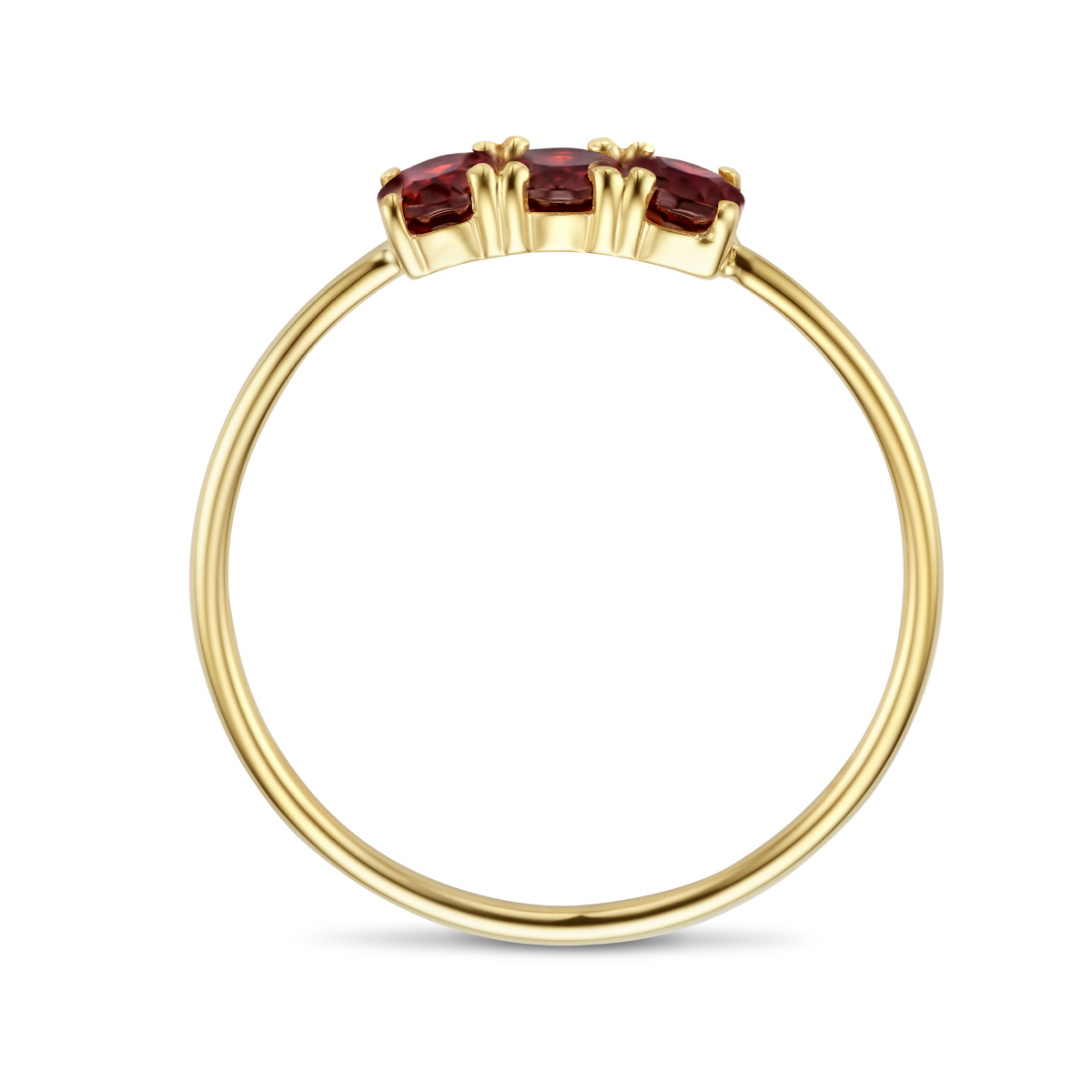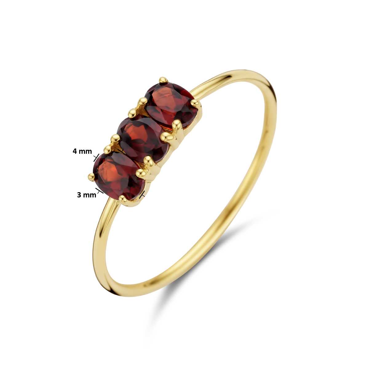 14k Geelgouden ring uitgevoerd met drie schitterende granaat stenen.