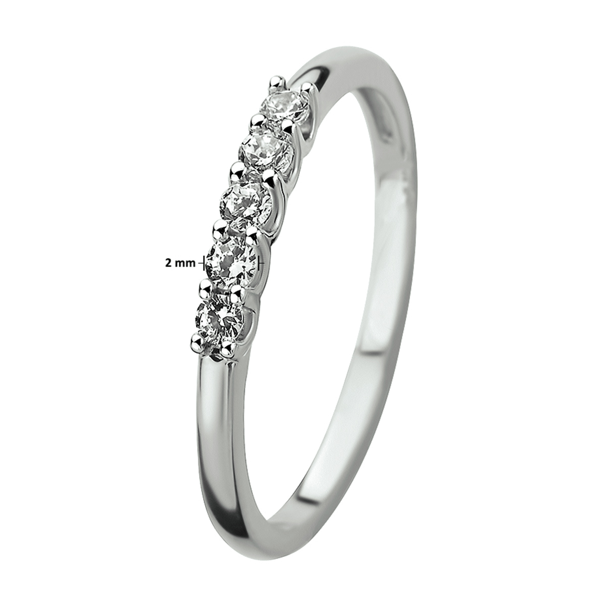 14k Witgouden ring met een schitterende zirkonia rij. De ring heeft een breedte van 2mm.