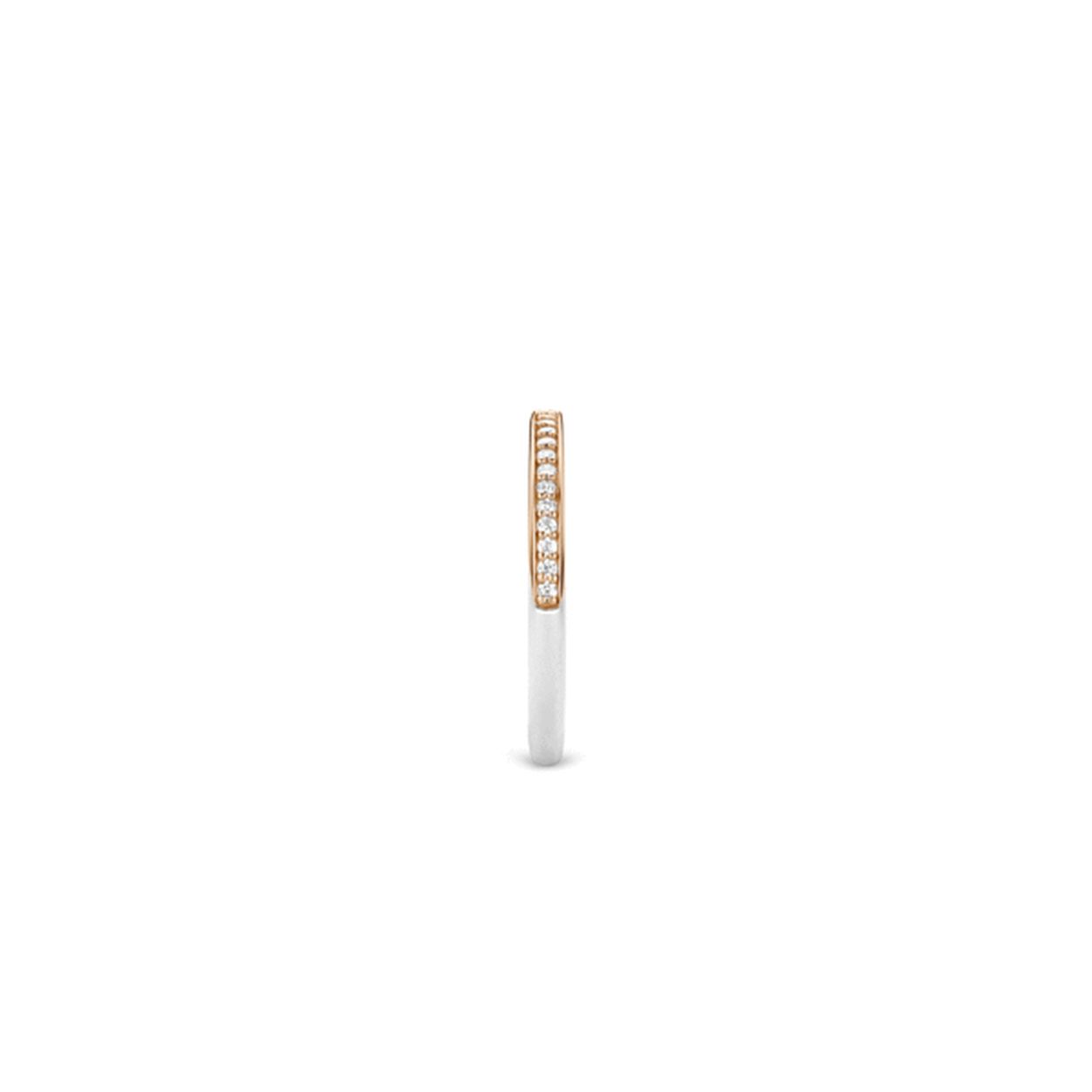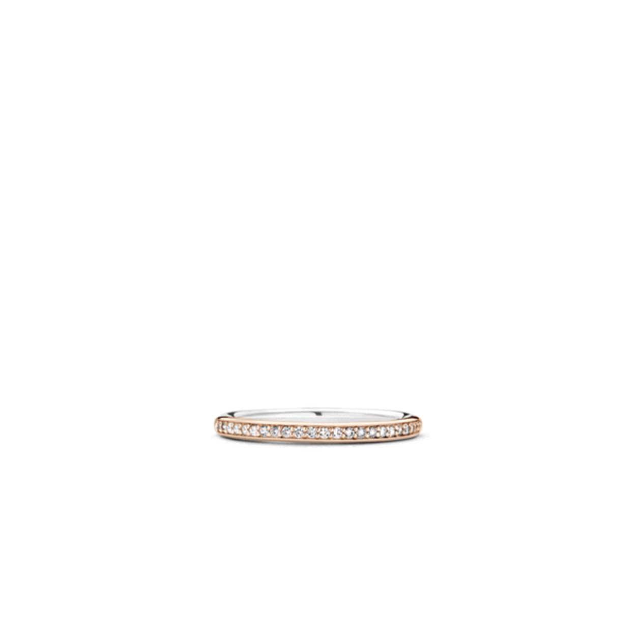 Deze elegante aanschuifring uit de TI SENTO - Milano collectie is gemaakt van gerhodineerd sterling zilver en gezet met een rij pav� gezette zirkonia's. De zettingen zijn voorzien van een 18 karaats roségouden plating. De binnenzijde van de ring is eveneens mooi afgewerkt voor een goed draagcomfort. De strakke uitvoering van de ring zorgt voor een naadloze aansluiting op andere ringen. Zo is de ring eenvoudig te combineren in een stapel. In de TI SENTO collectie zijn vele ringen te vinden waar combinaties mee kunnen worden gemaakt volgens het TI SENTO Mix & Match concept.