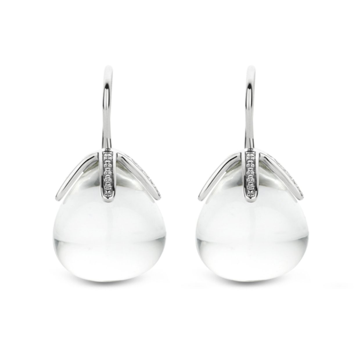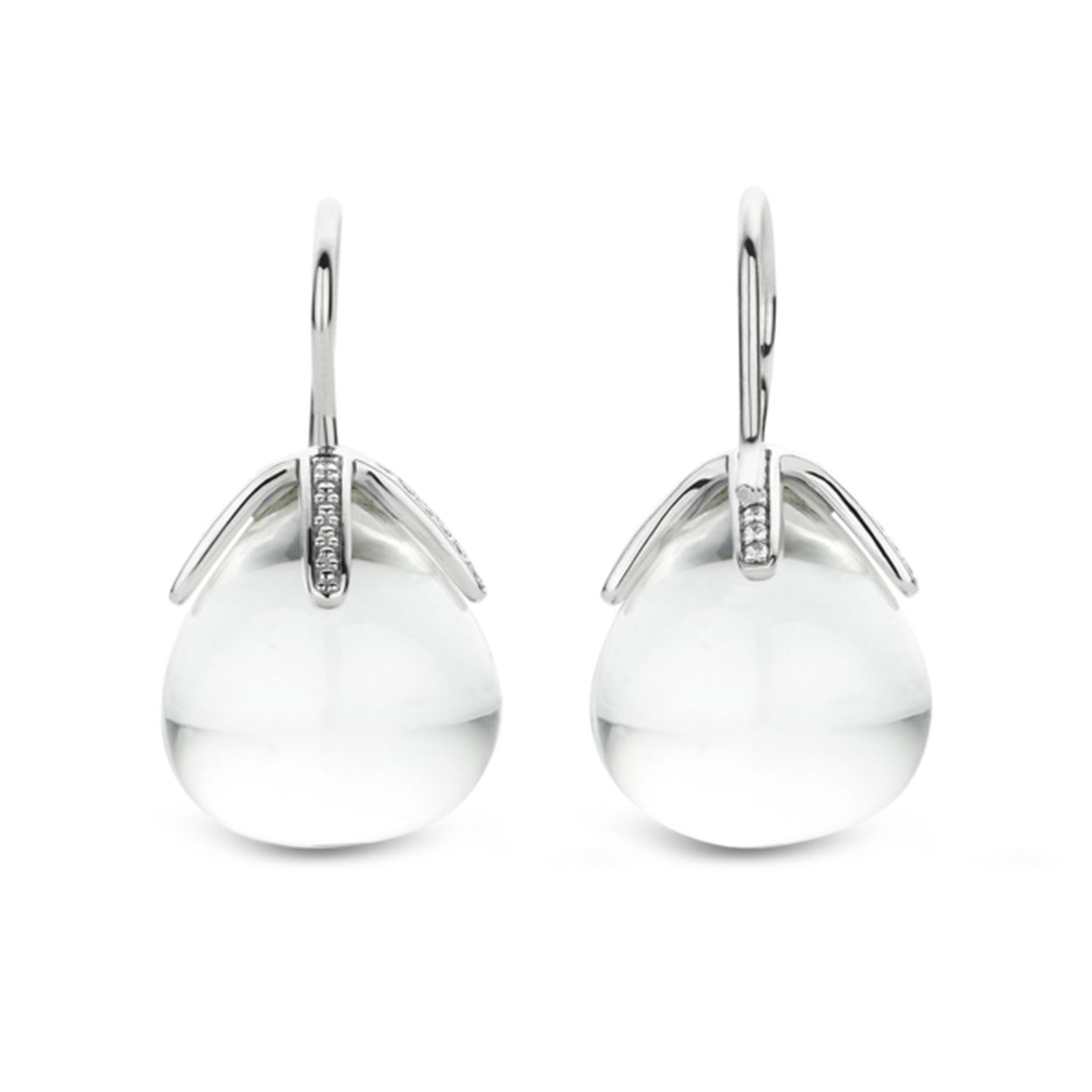 Elegantie en a touch of spice komen samen in deze prachtige oorhangers. De sieraden bestaan uit een  roosknop van wit kristal en zilver. Draag de oorhangers alleen voor een fijne vrouwelijke look of maak een statement door deze te combineren met de bijpassende ring en collier. Deze geweldige kleuren maken je look helemaal af en door de goudsmid standaard is het sieraad van hoge kwaliteit waardoor deze jaren meegaat. Het pure zilver is gerhodineerd voor een mooie glans en extra bescherming. TI SENTO - Milano juwelen hebben een tijdloze stijl en een flinke snuf spice. Milanese meeslependheid met verborgen details. Verfijnd �n spannend. Gevoelig m�t allure. TI SENTO - Milano sieraden schreeuwen niet maar ze fluisteren het van de daken. Woah ja