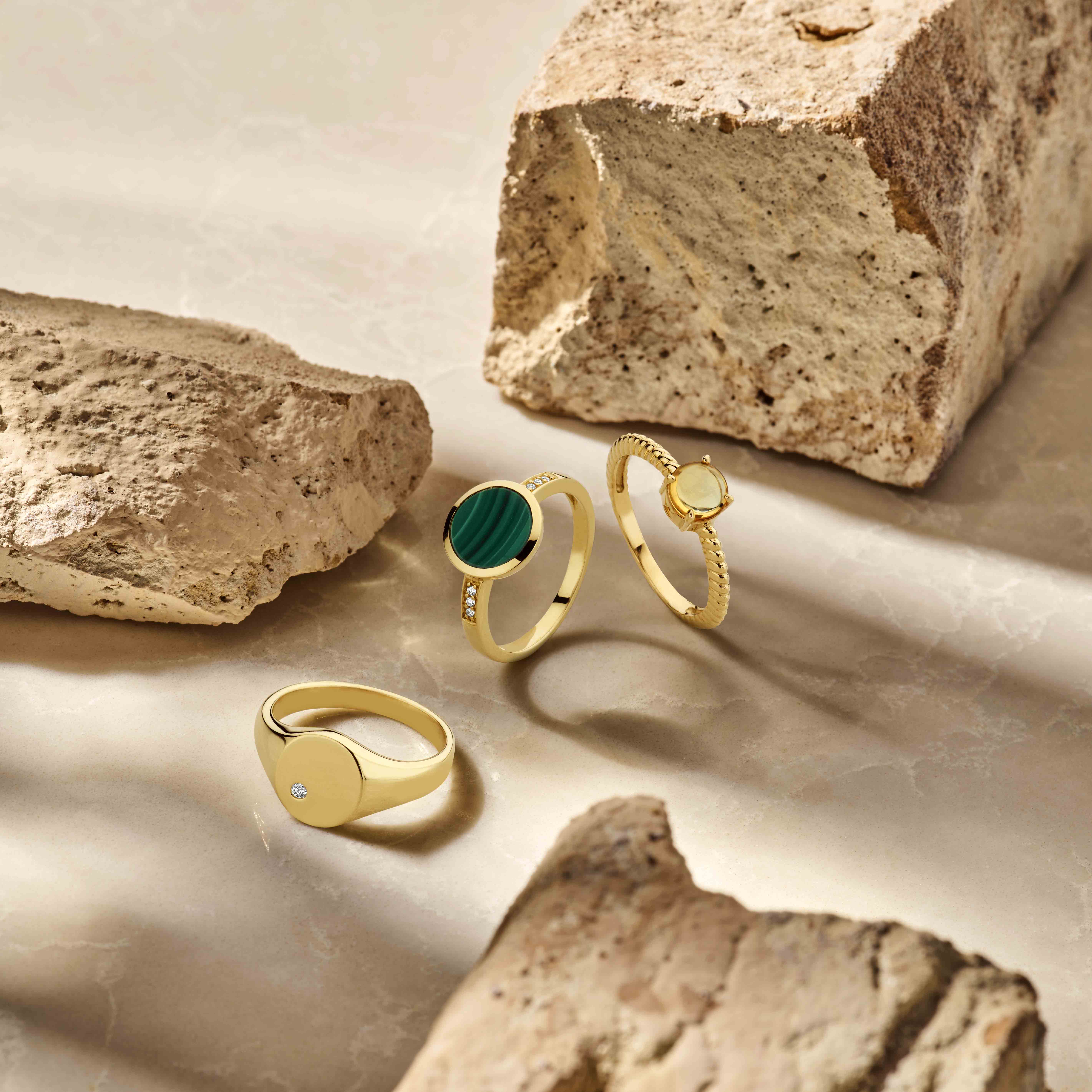 ring malachiet en diamant goud (geelgoud)