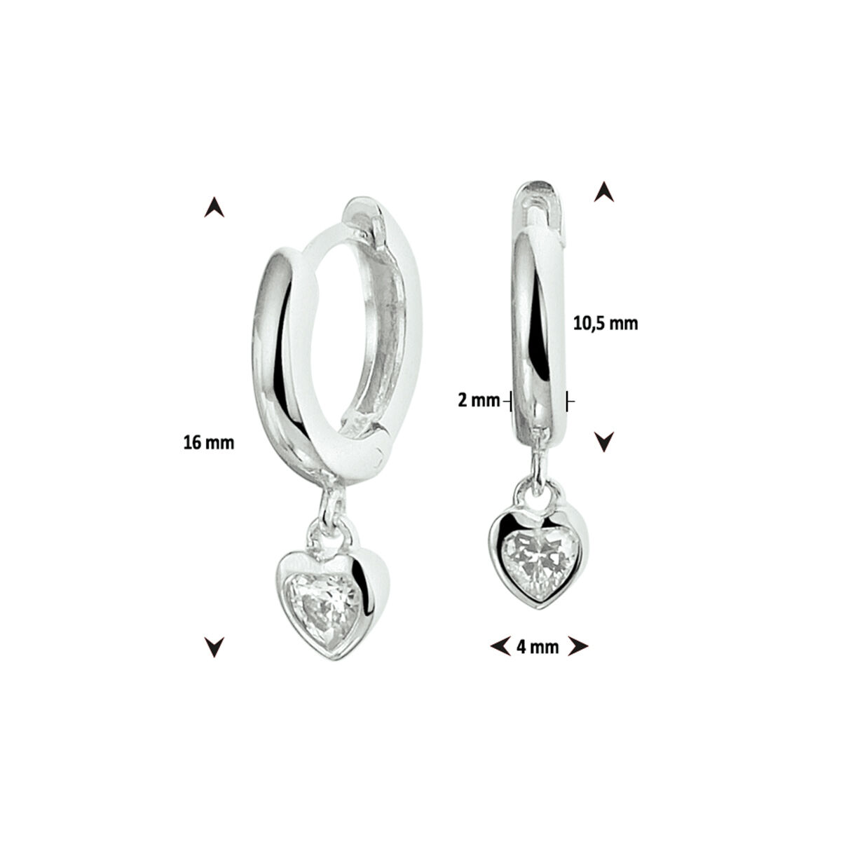 Gerhodineerd zilveren klapoorringen met een hartje en schitterende zirkonia. Tip: Deze klapoorringen zijn doordat ze gemakkelijk zijn te combineren perfect om kado te geven!