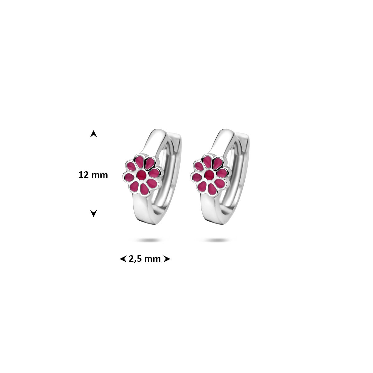 Gerhodineerd 925 zilveren oorringen uitgevoerd met een bloem. De oorringen hebben een afmeting van 12x2.5mm.